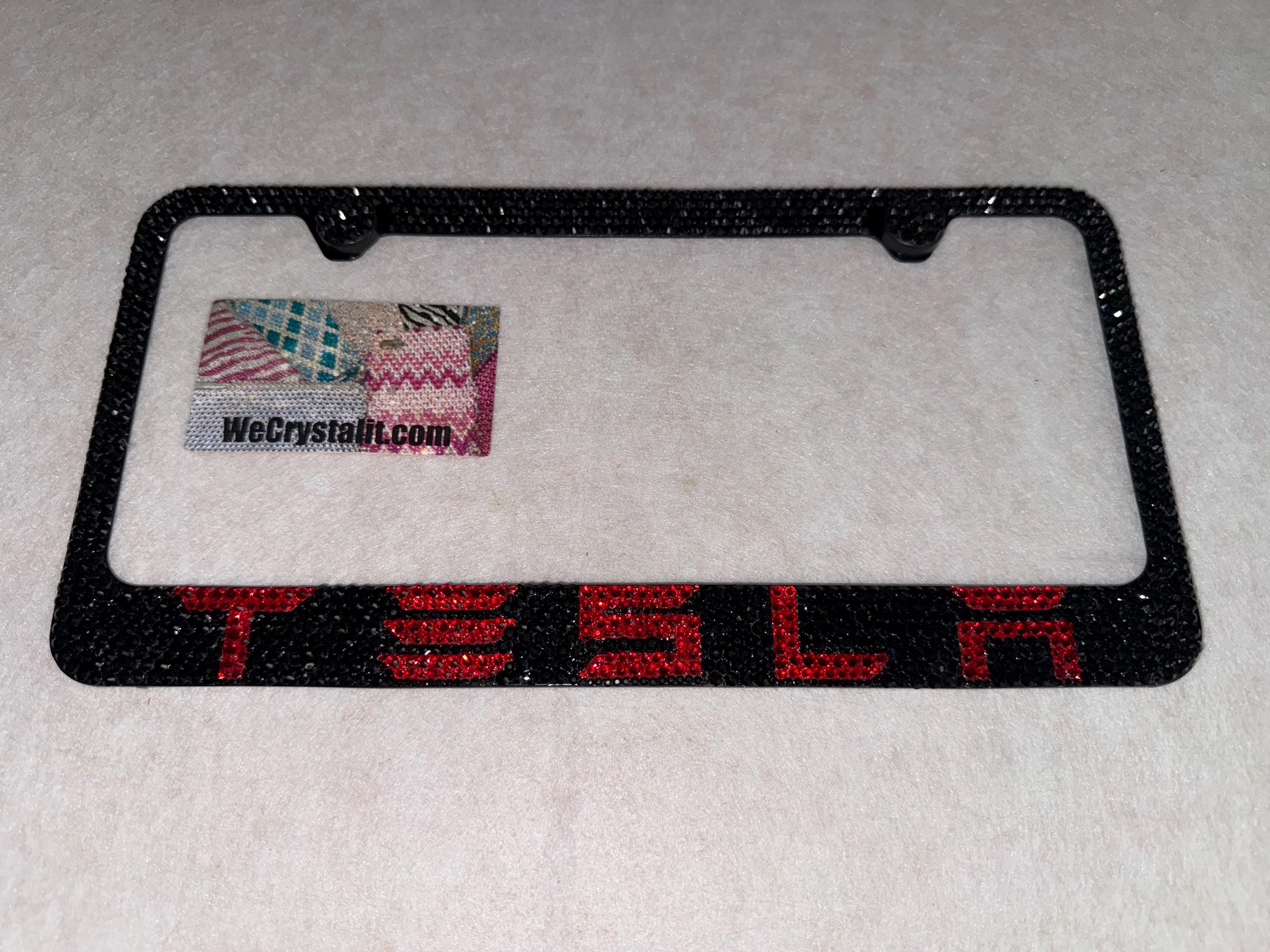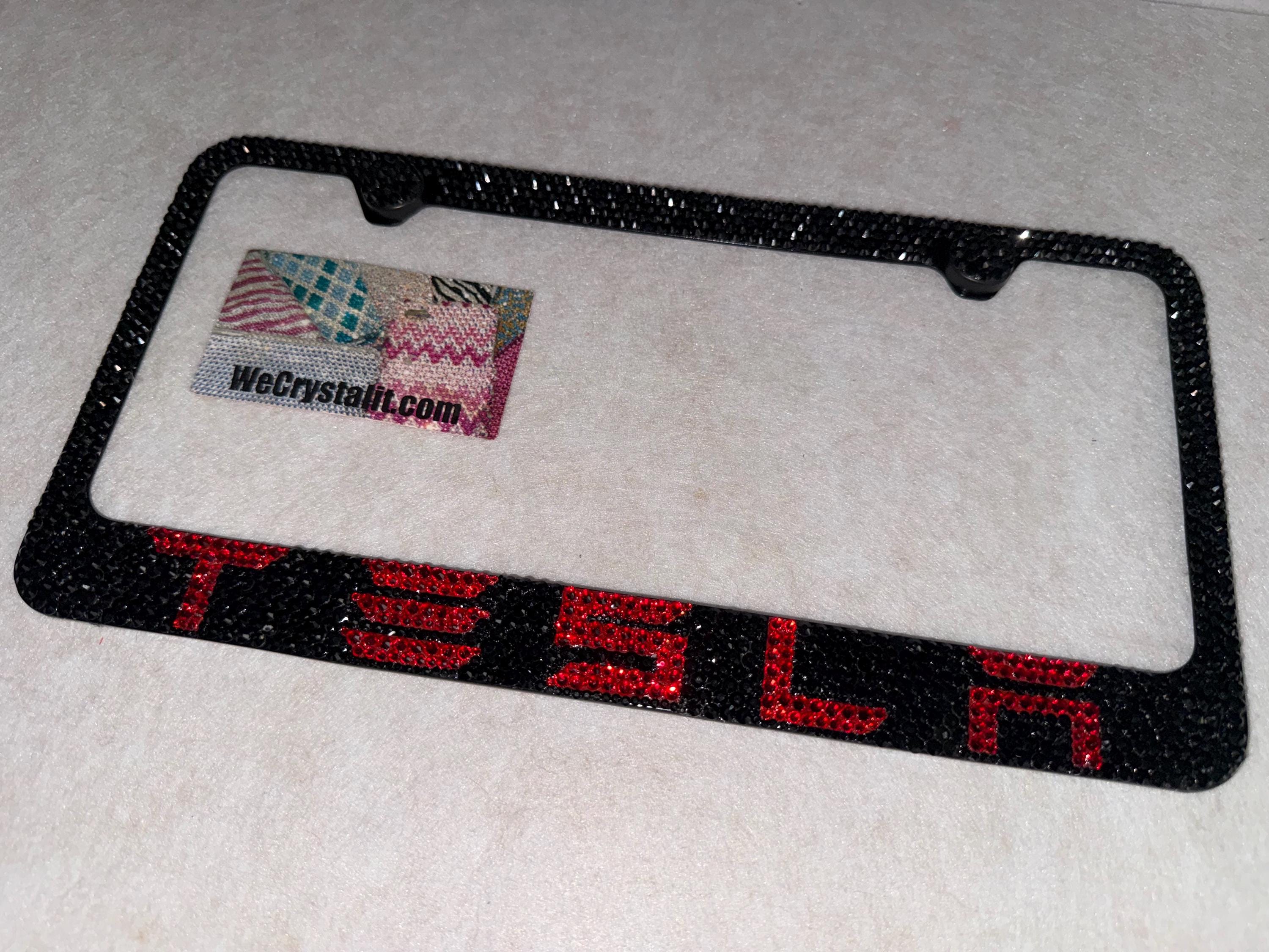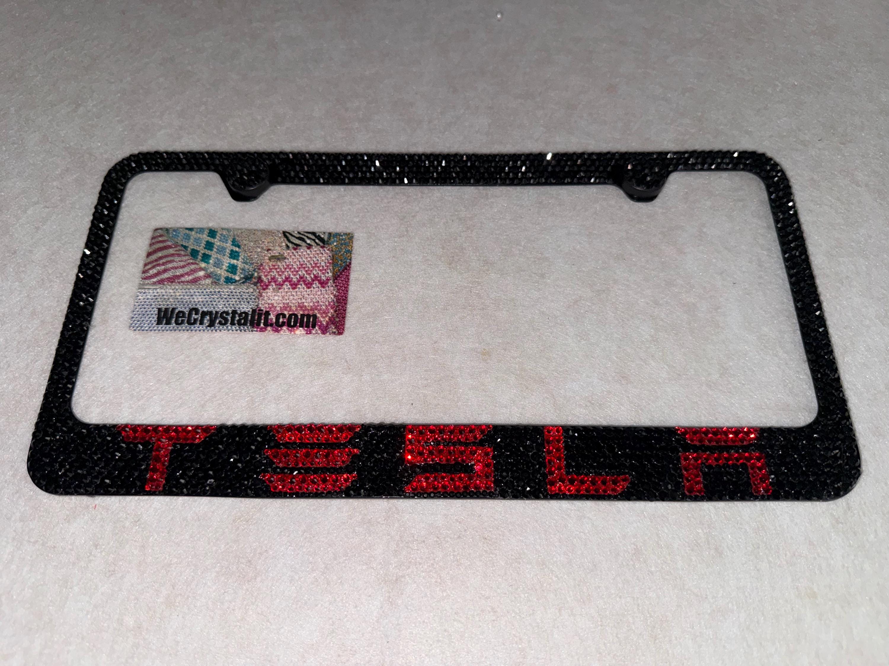 Tesla Black Red Crystal Sparkle Auto Bling Rhinestone License Plate Frame made with Swarovski Elements Made by WeCrystalIt