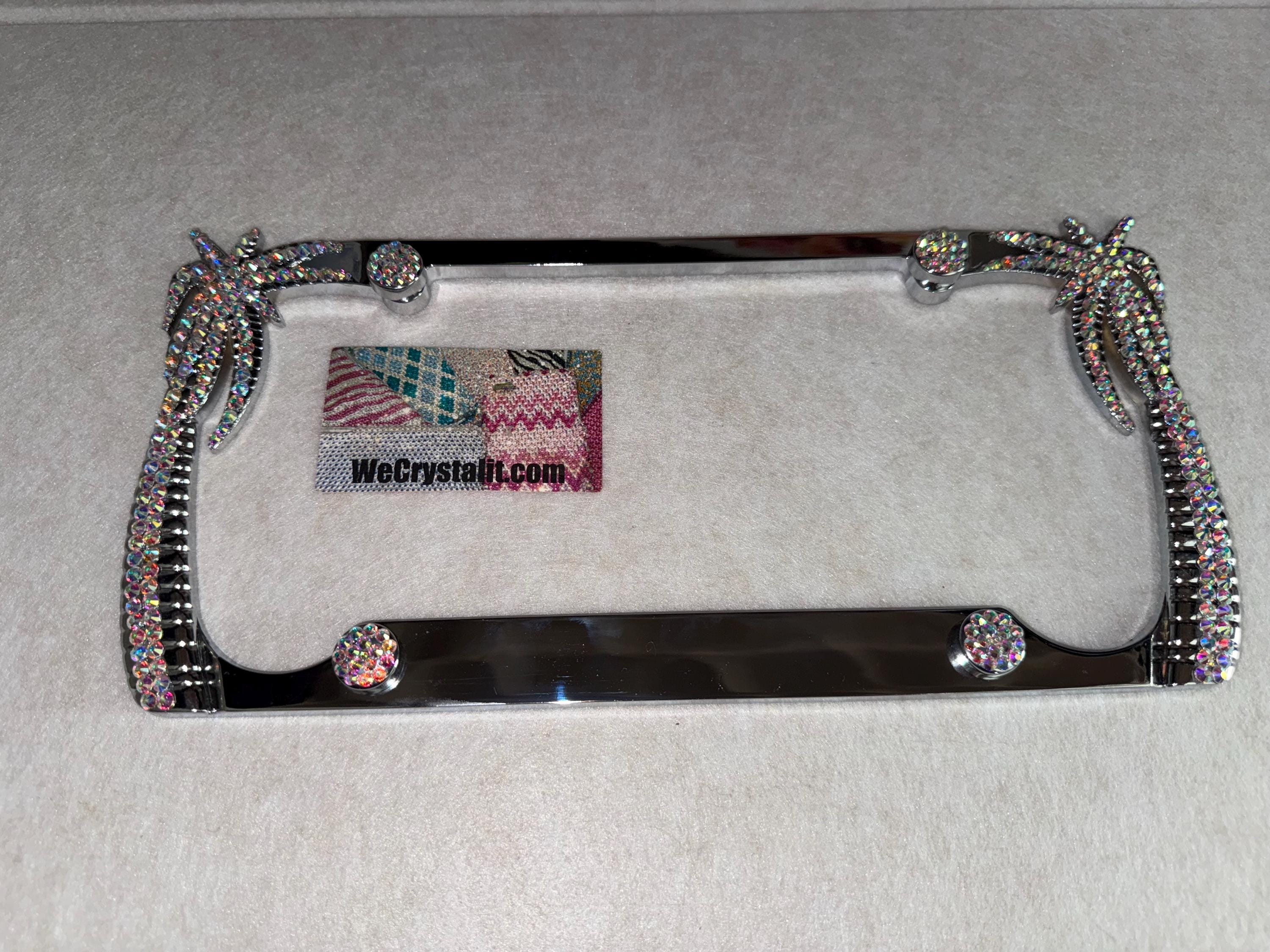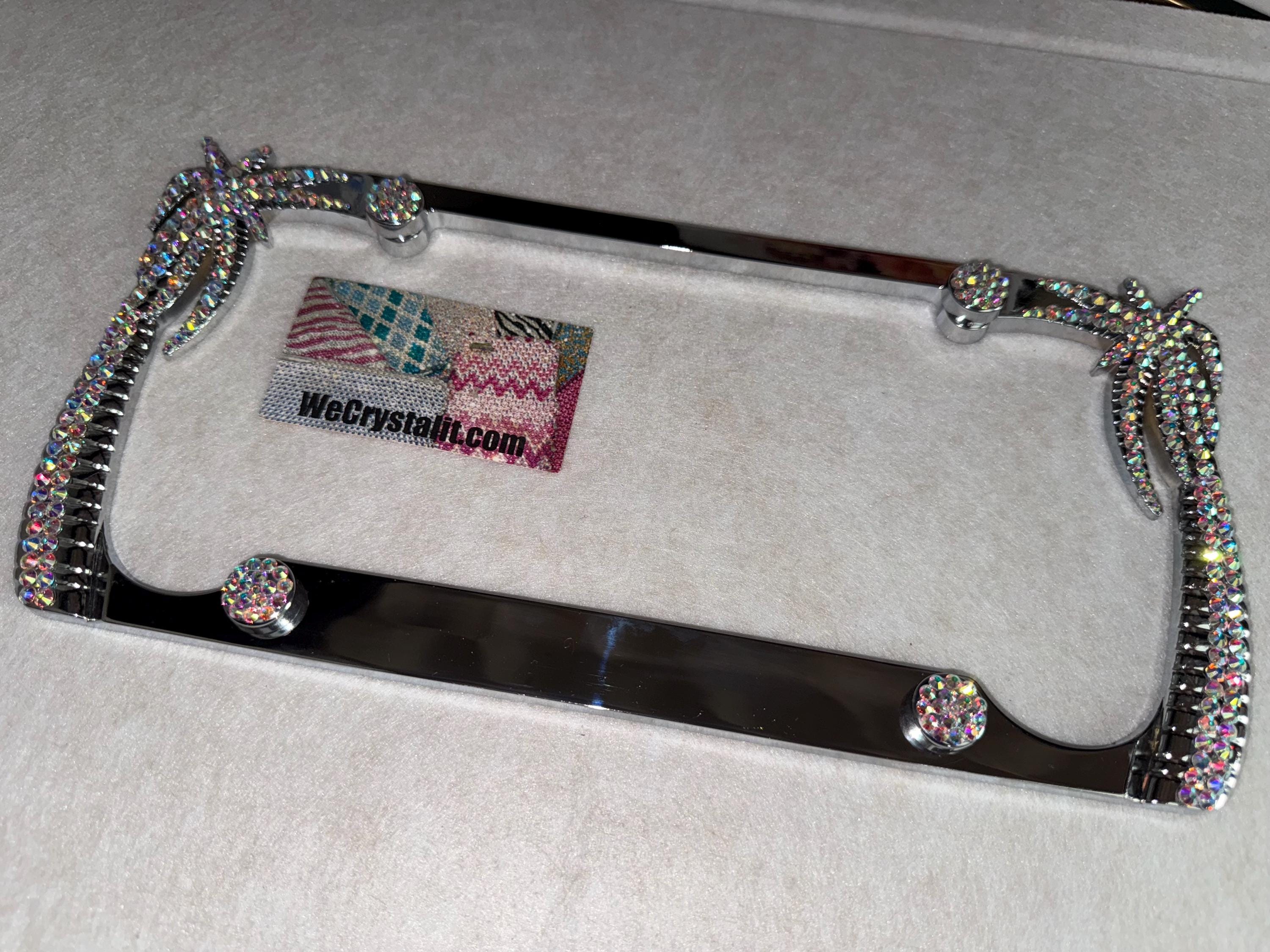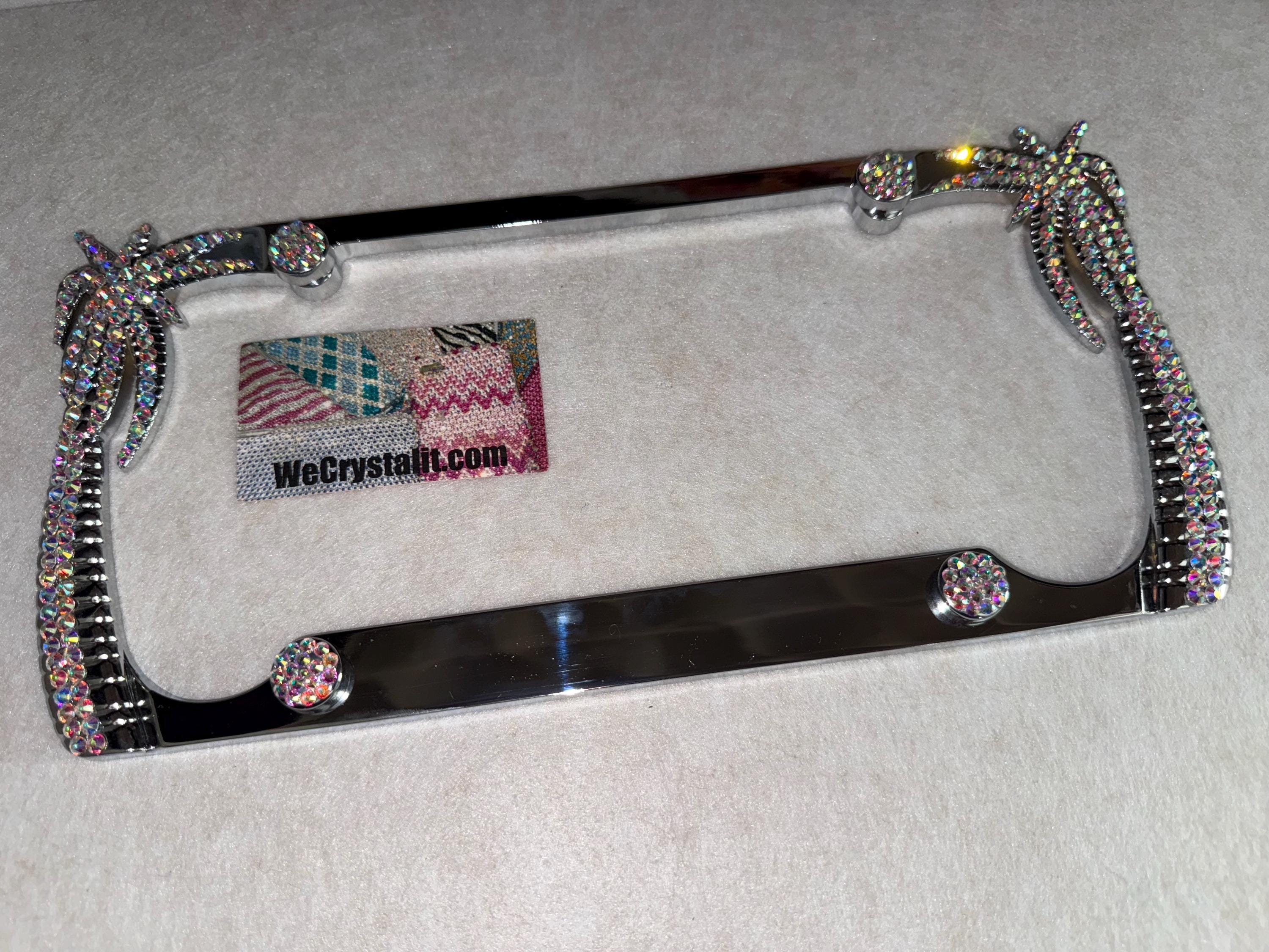 (1) Palm tree Bling sides only Plate Crystals on a Silver Plate Frame. Made with Austrian Crystals.