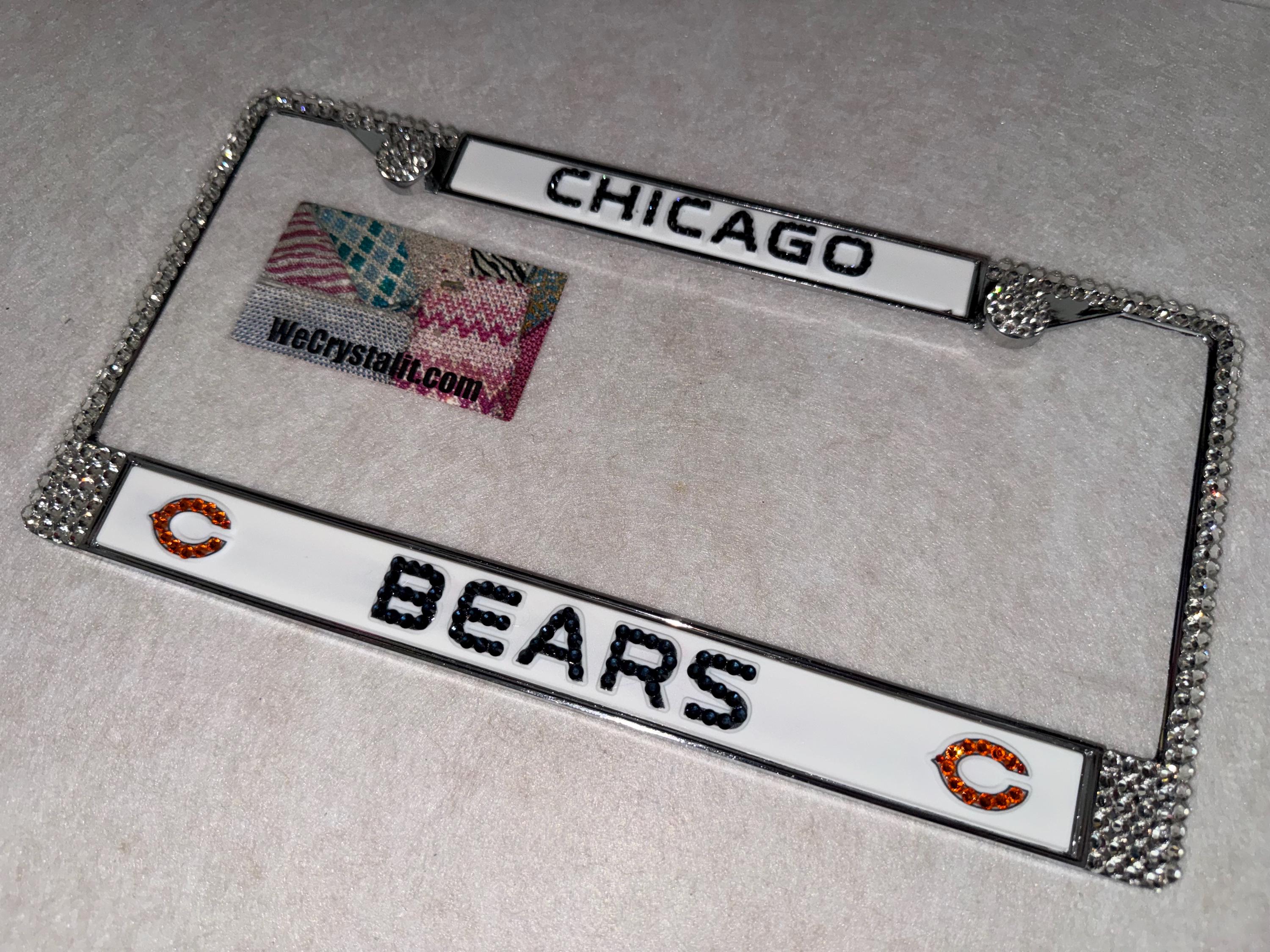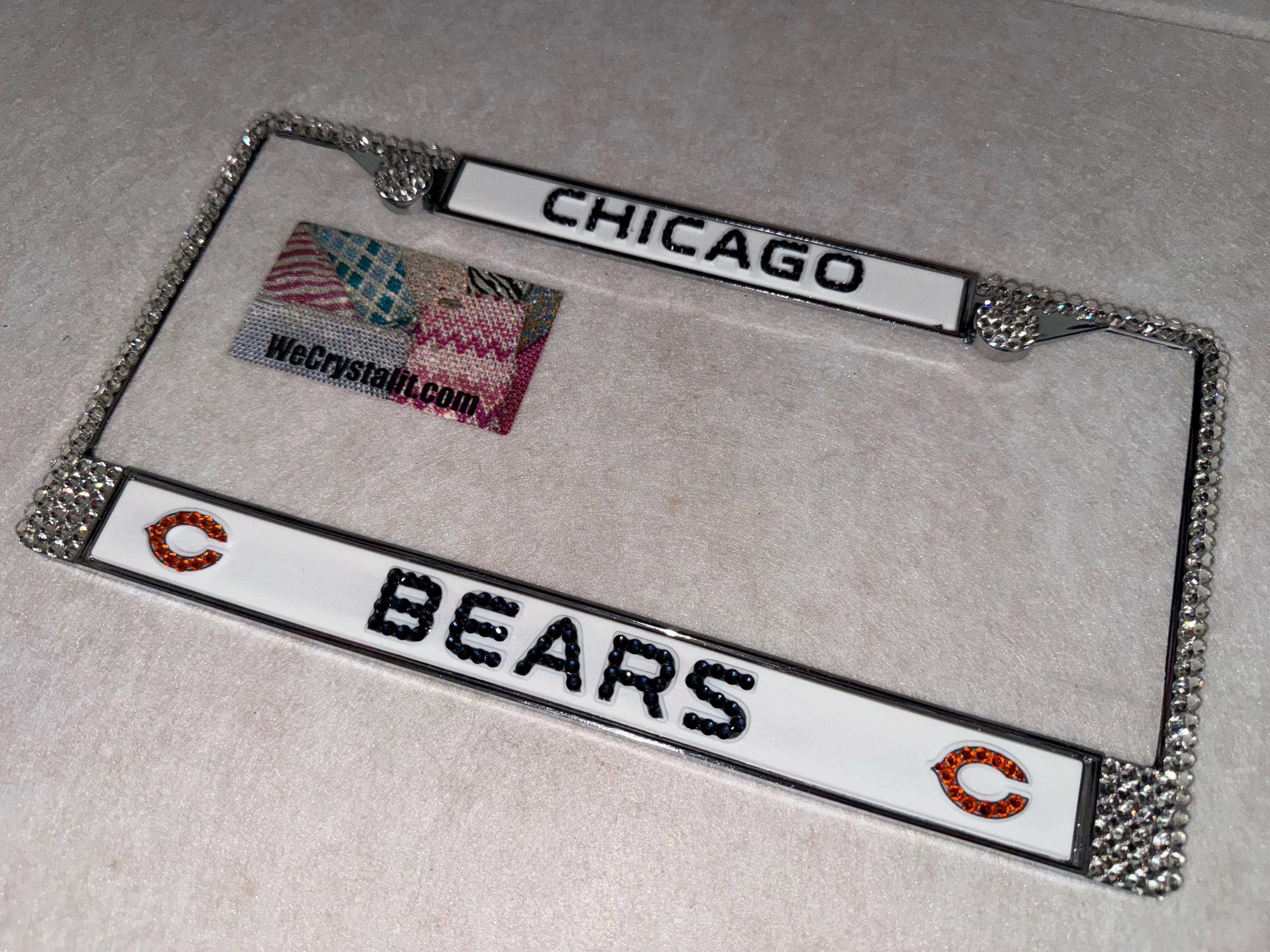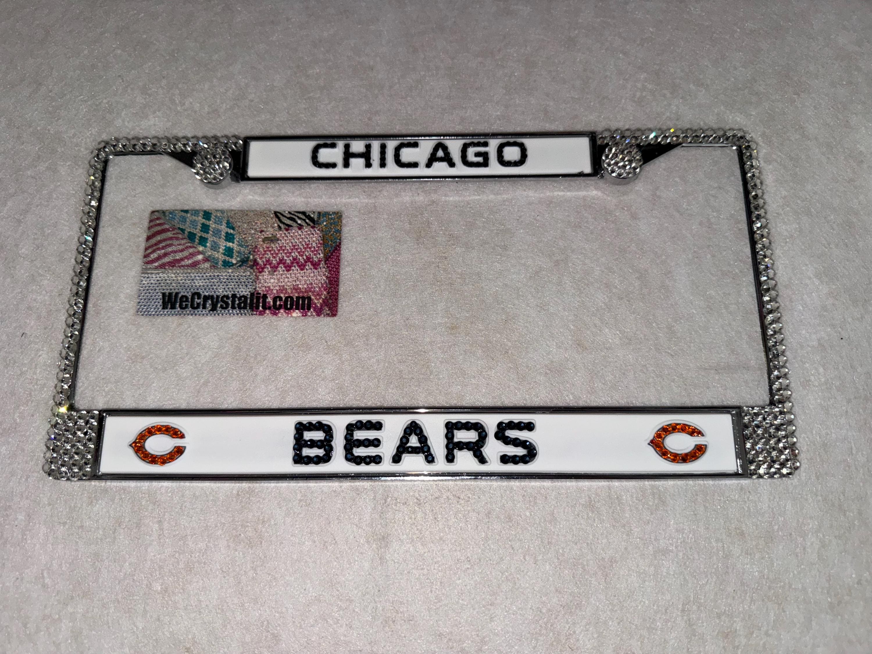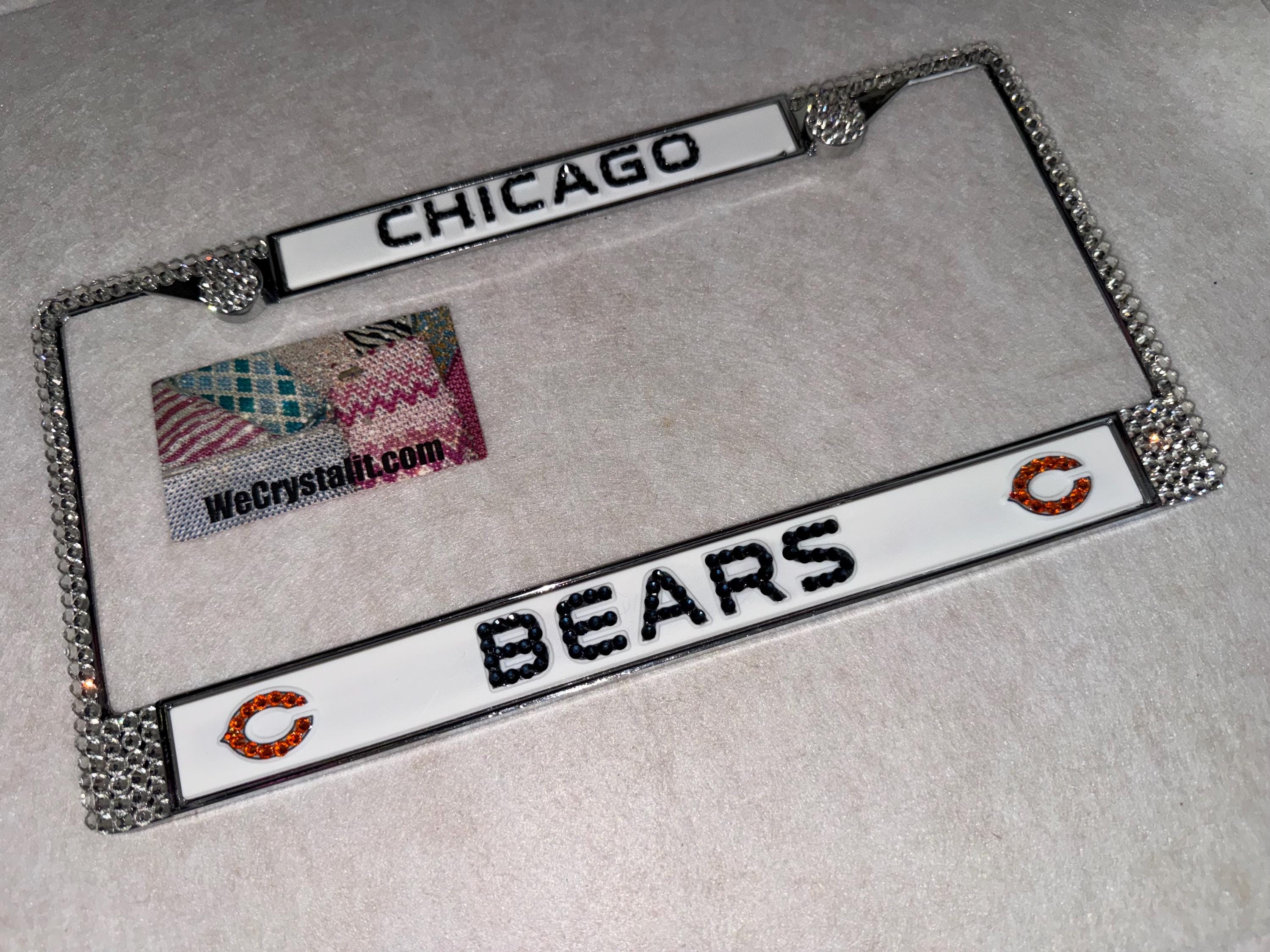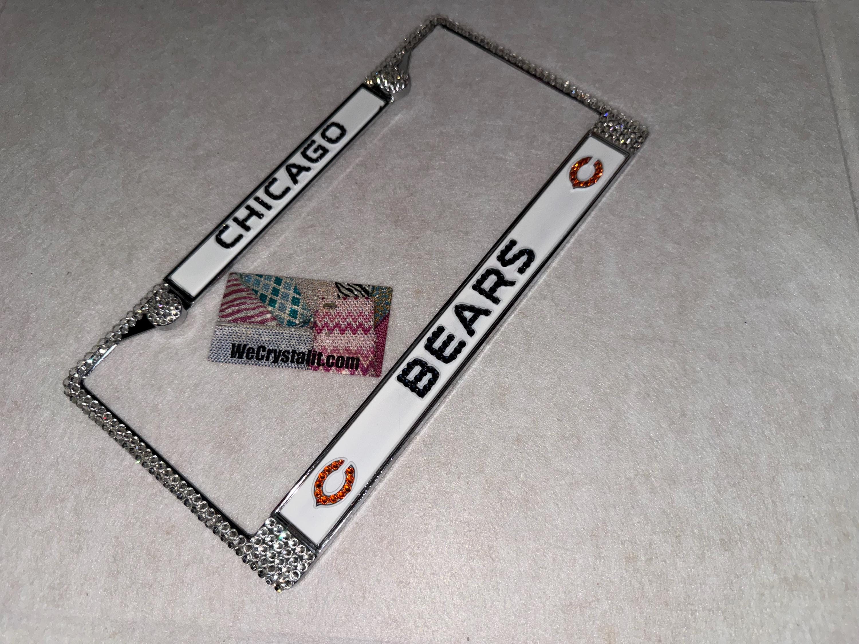 Letters also have crystals. Sports Bling License Plate Thicker on bottom so you only need two Holes to hold the plate on.