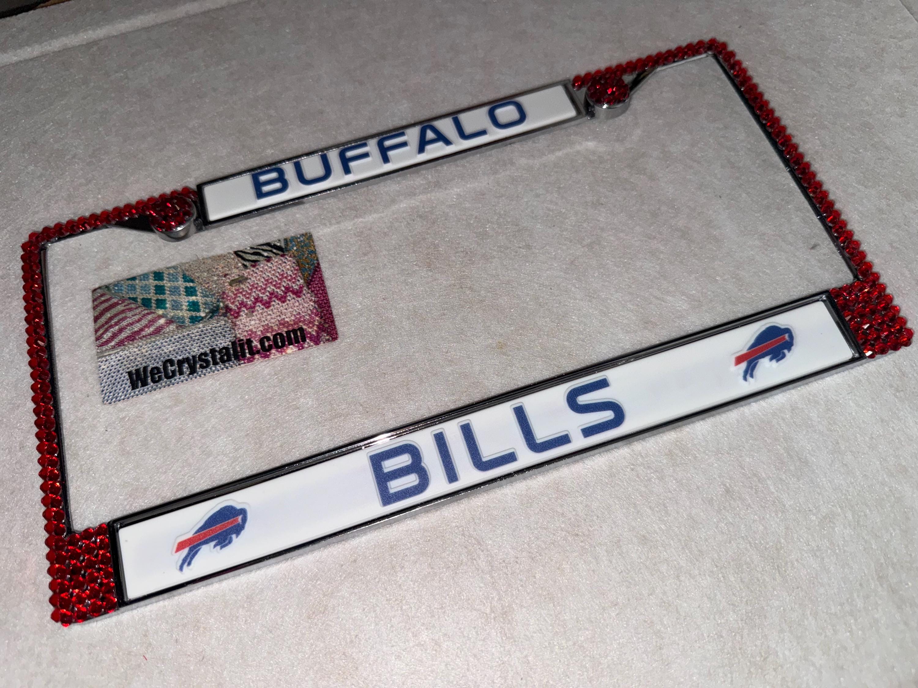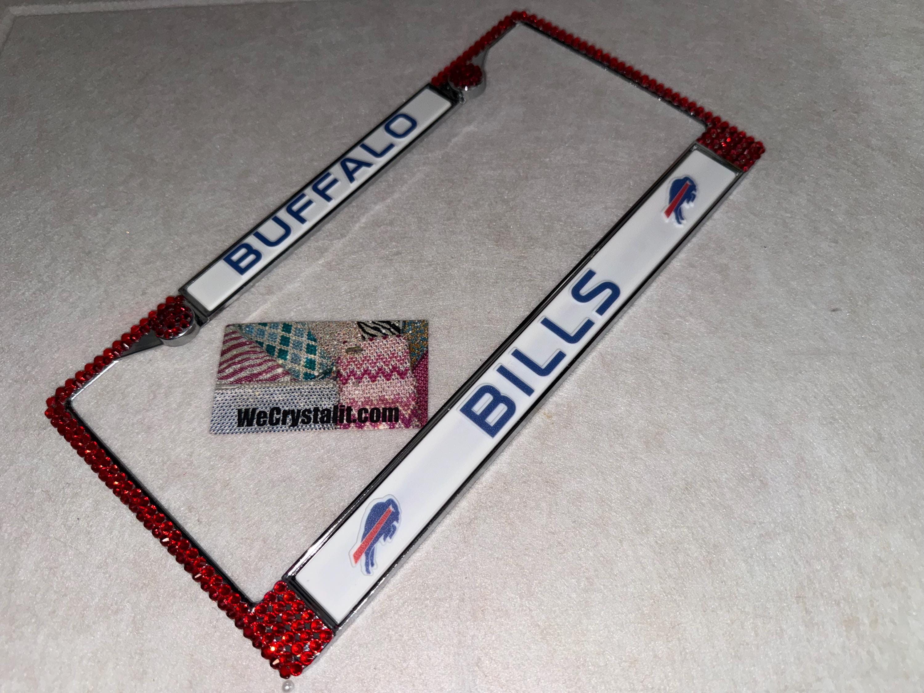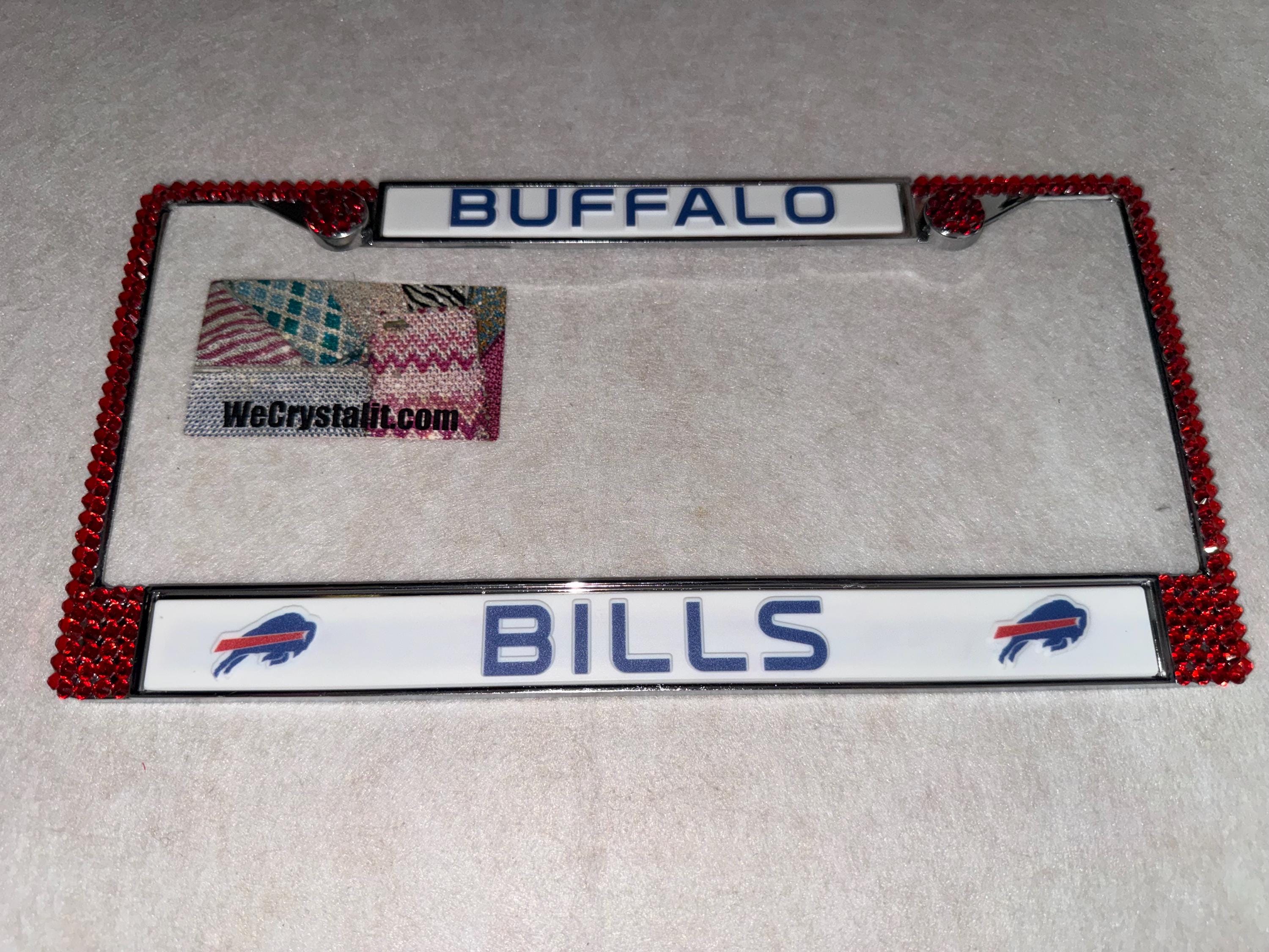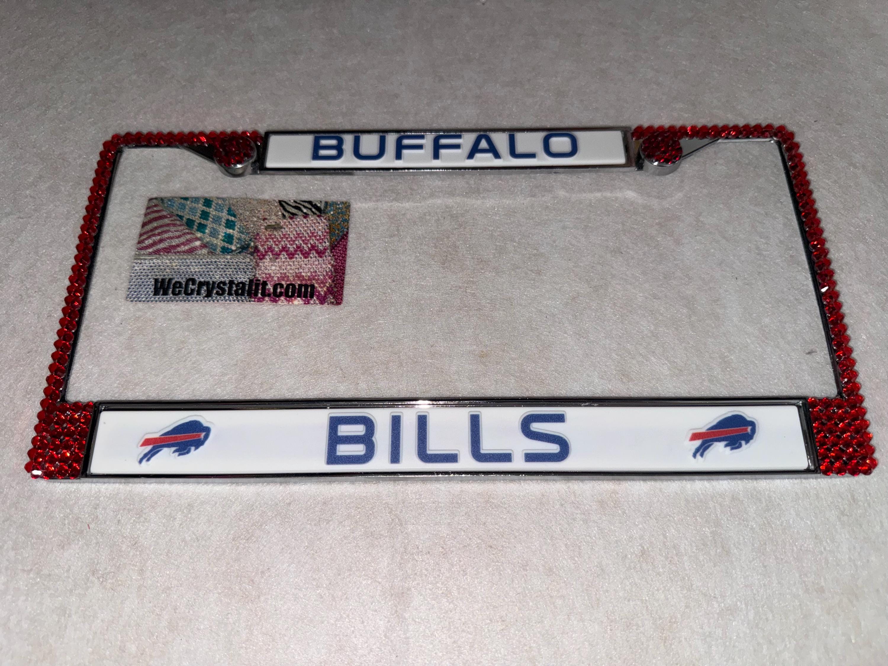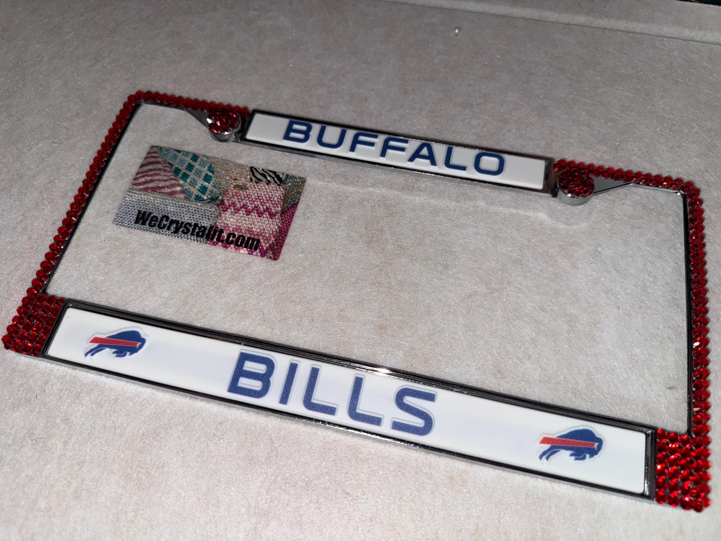 Buffalo Bills football Sports Bling License Plate Thicker on bottom so you only need two Holes to hold the plate on.