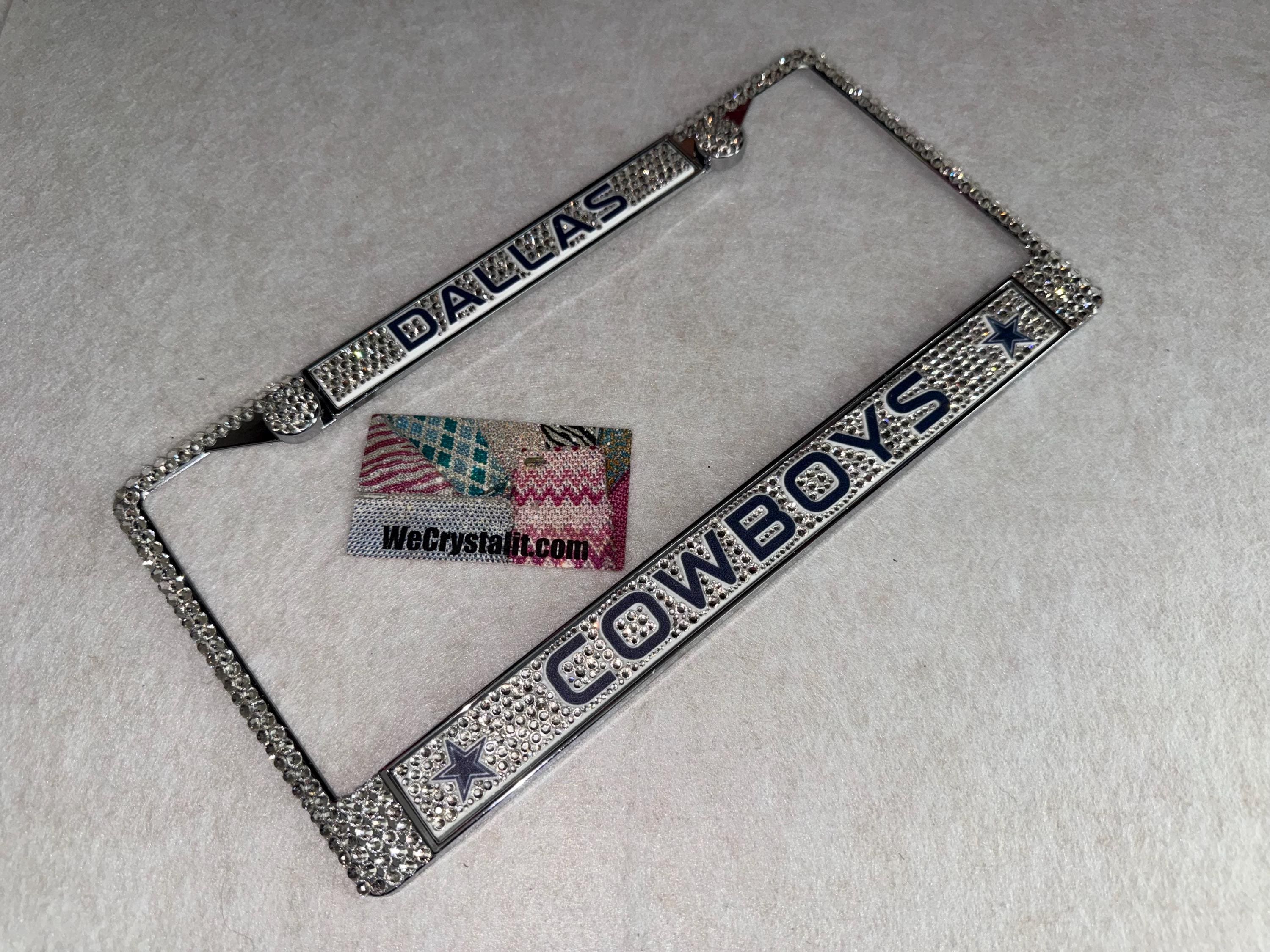 Dallas Cowboys Football Sports Bling License Plate Thicker on bottom so you only need two Holes to hold the plate on.