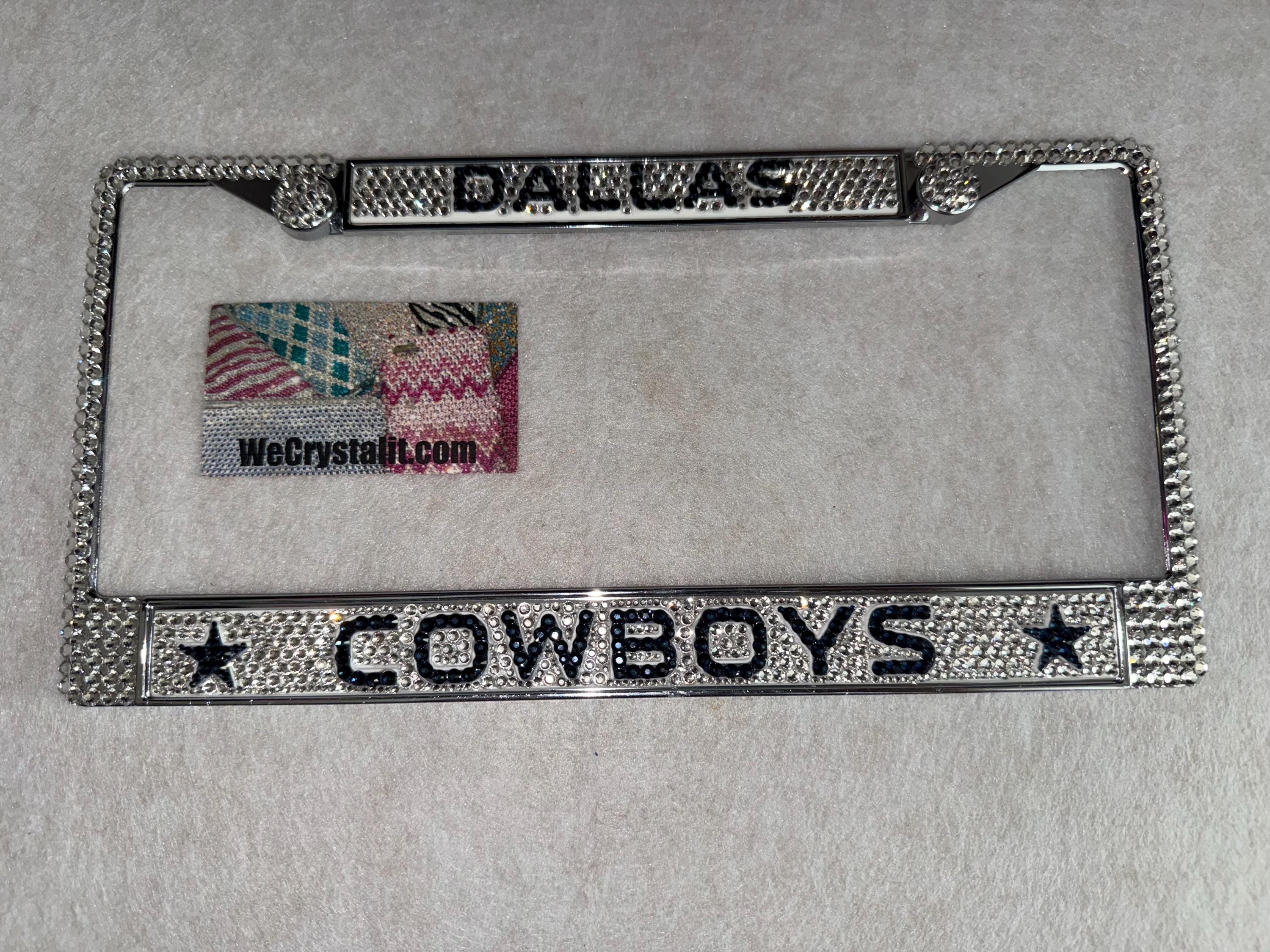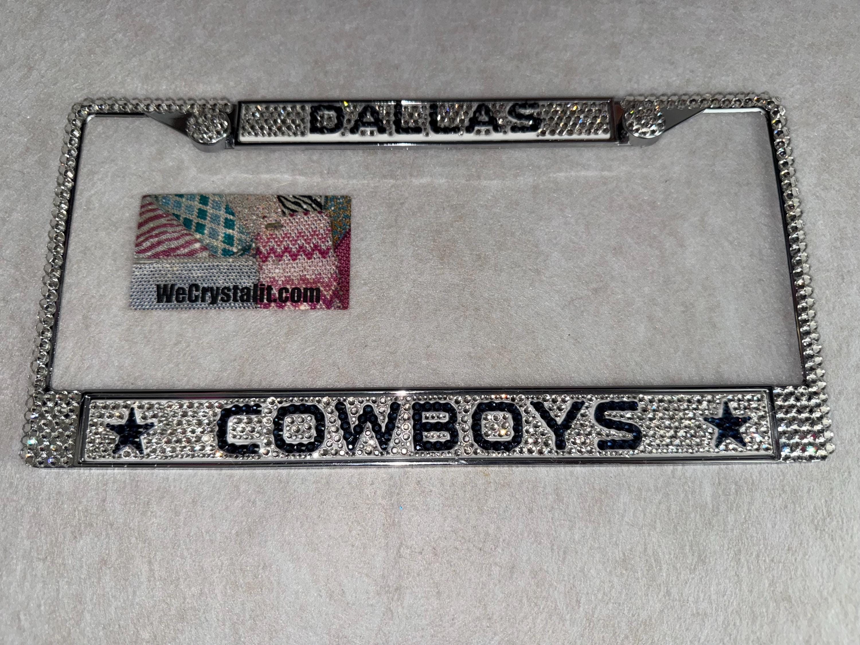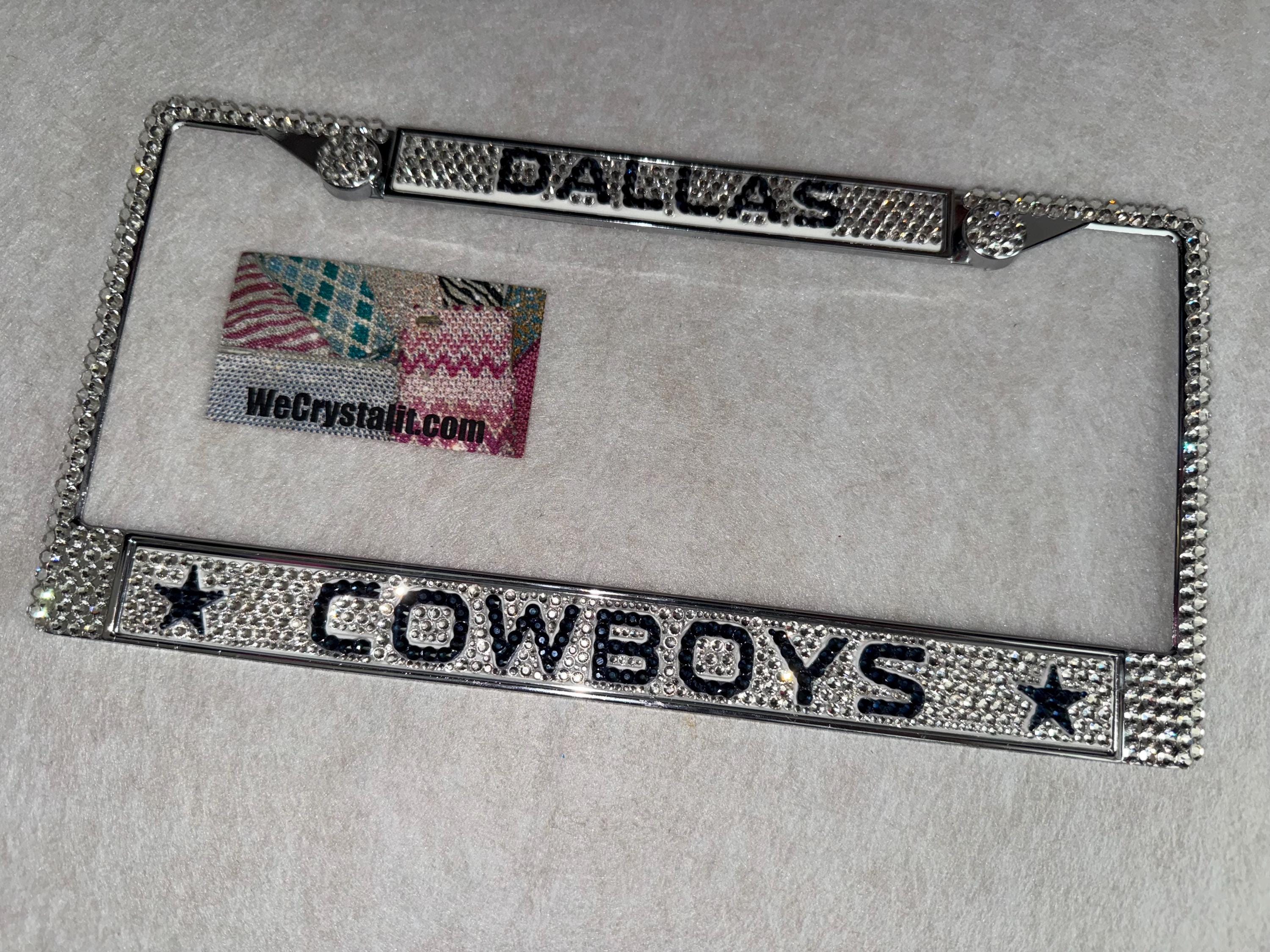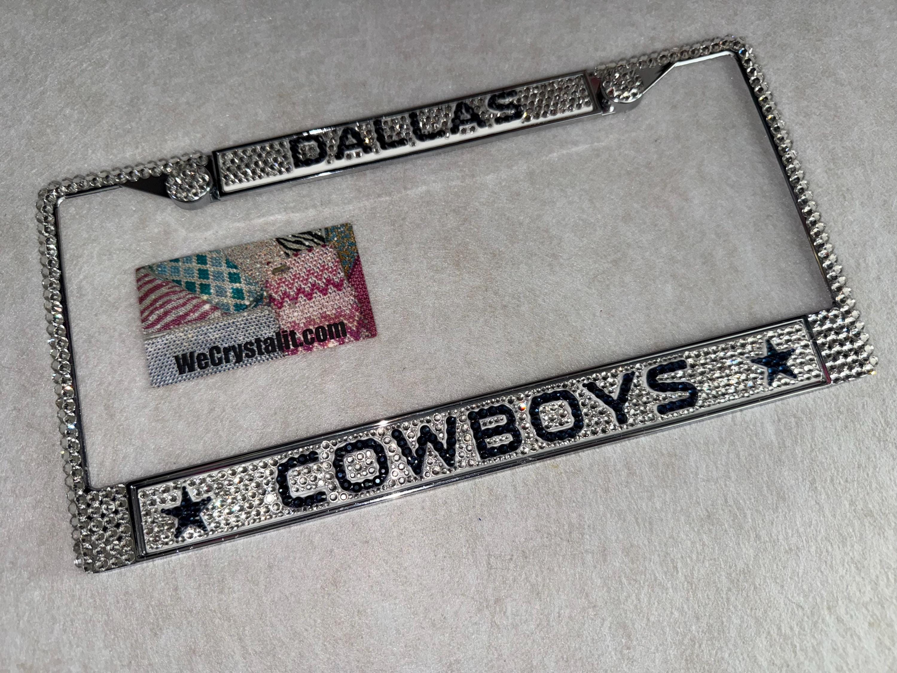 Dallas Cowboys Football Sports Bling License Plate Thicker on bottom so you only need two Holes to hold the plate on.