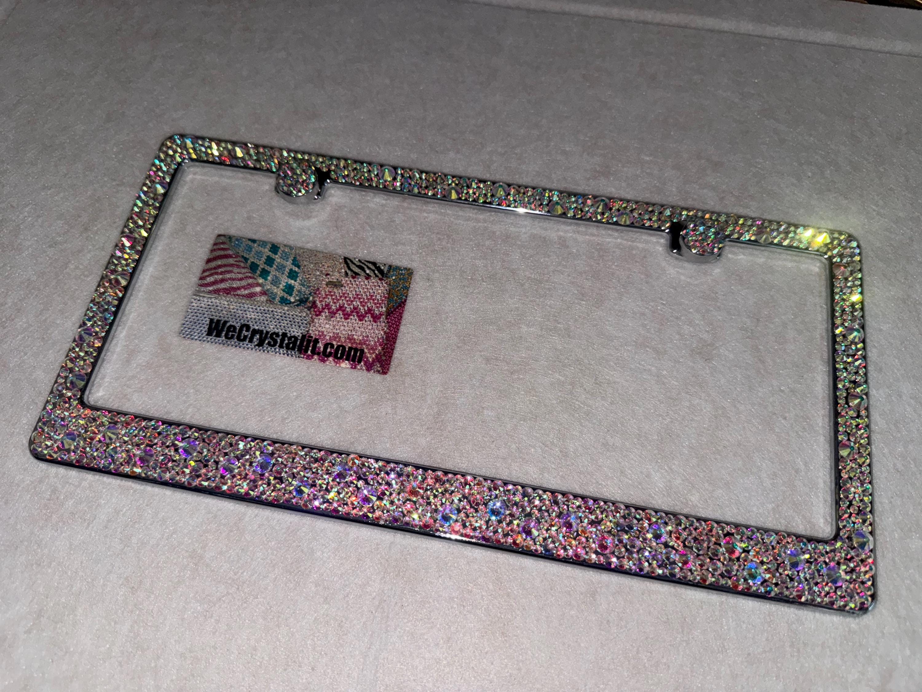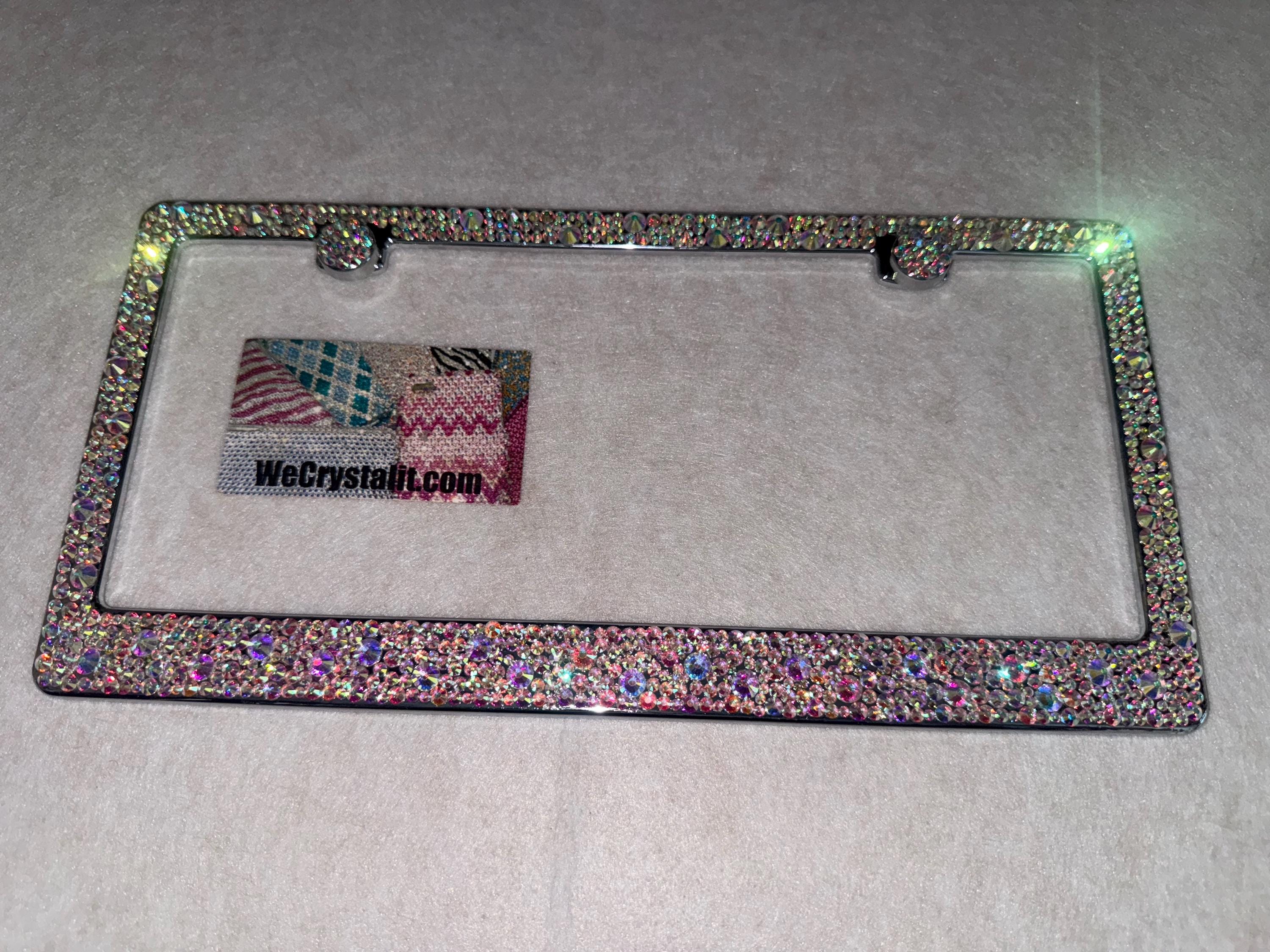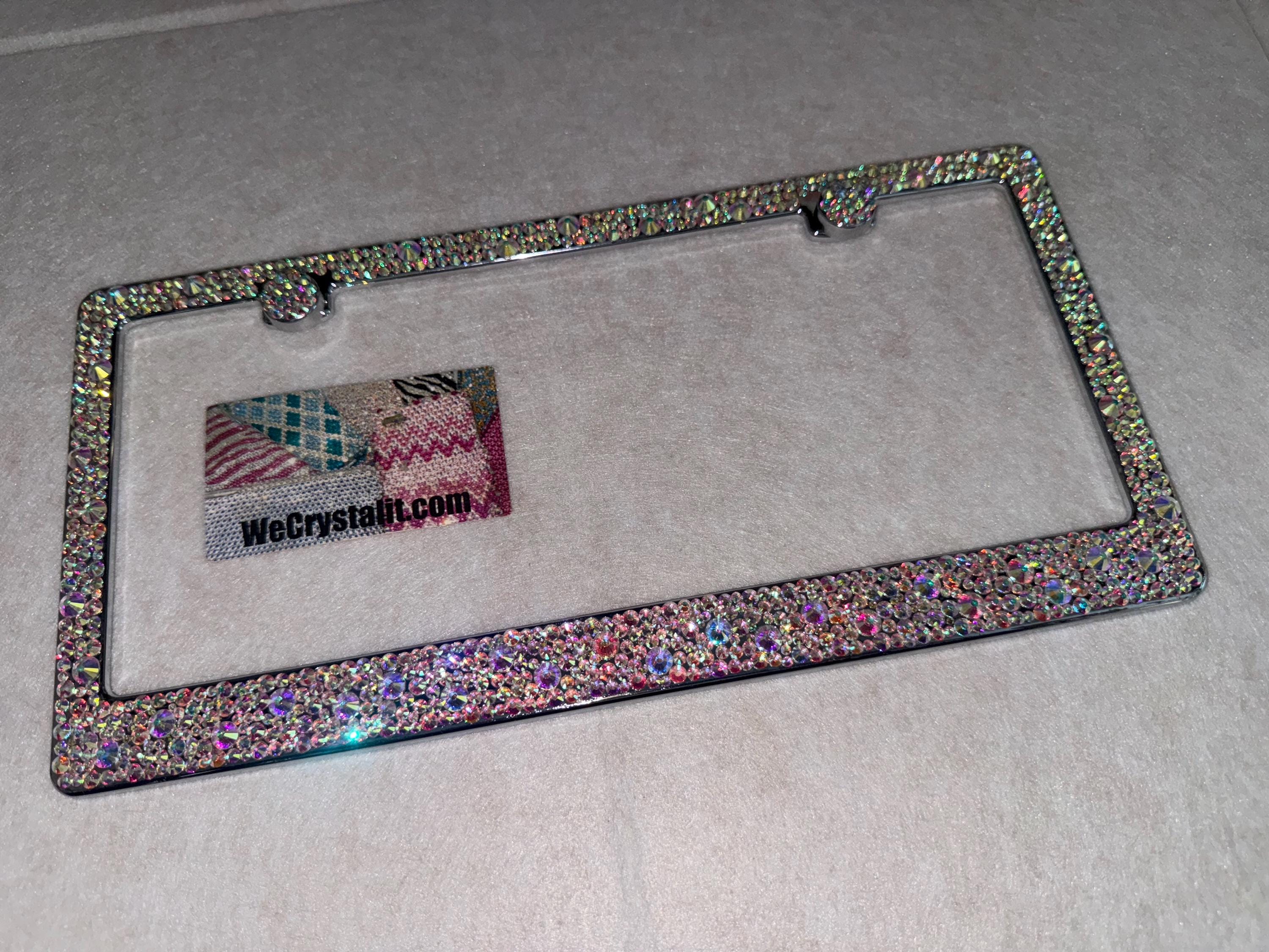 Aurora Borealis Bumpie Multi Sized Bling License Plate Thicker on bottom so you only need two Holes to hold the plate on.
