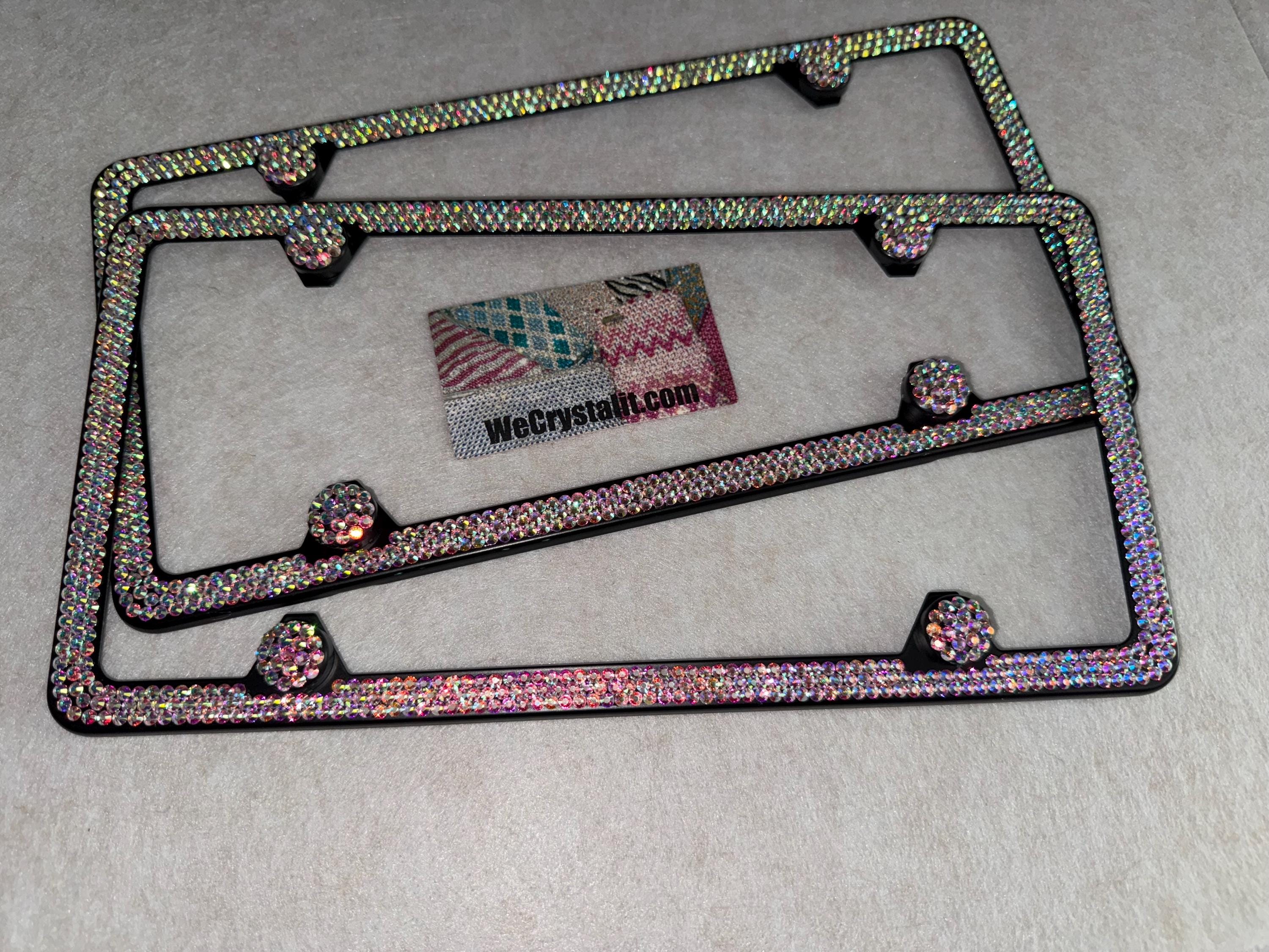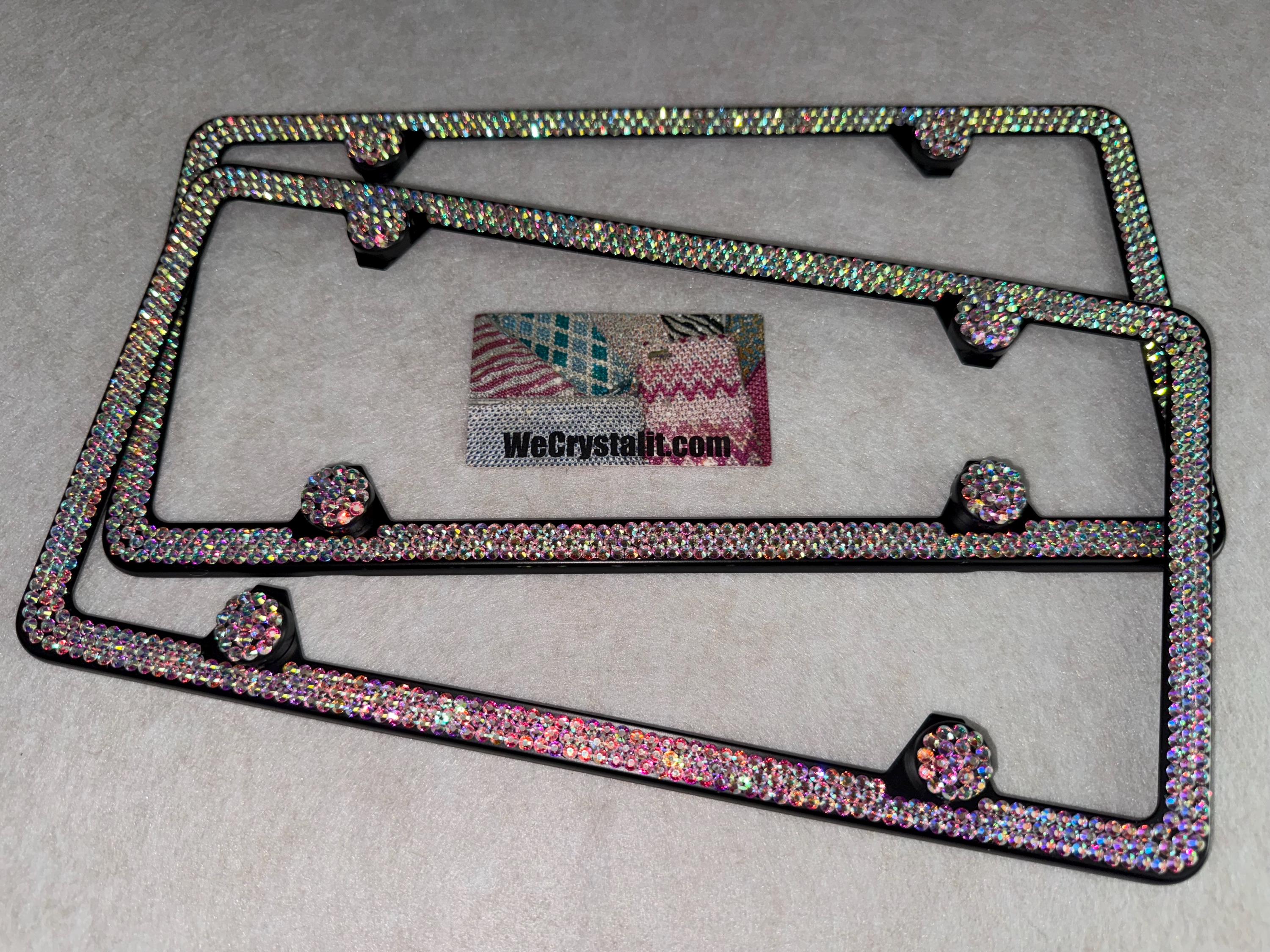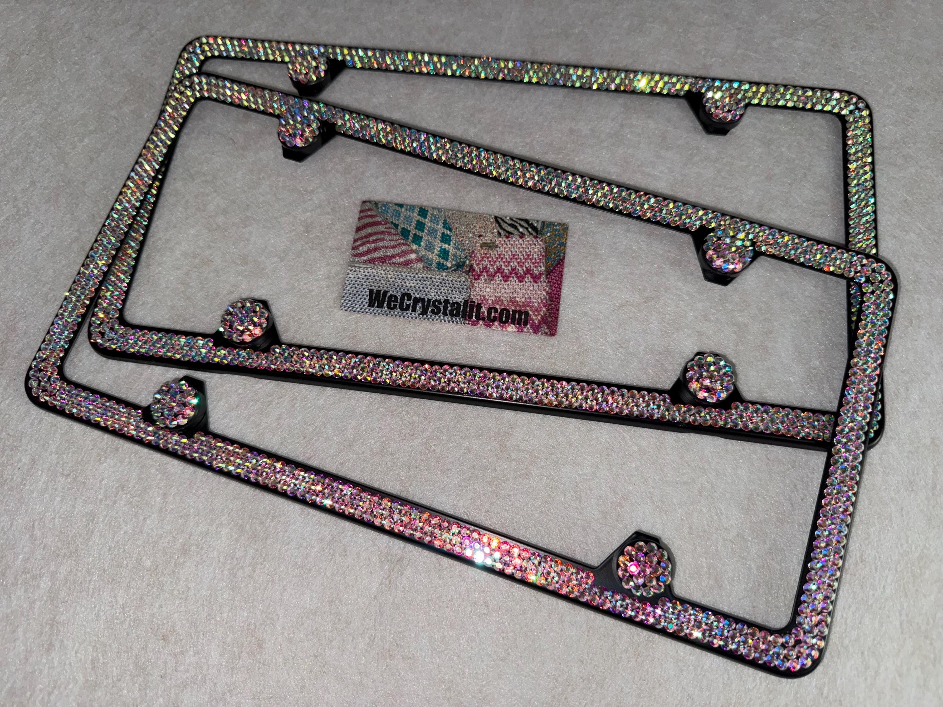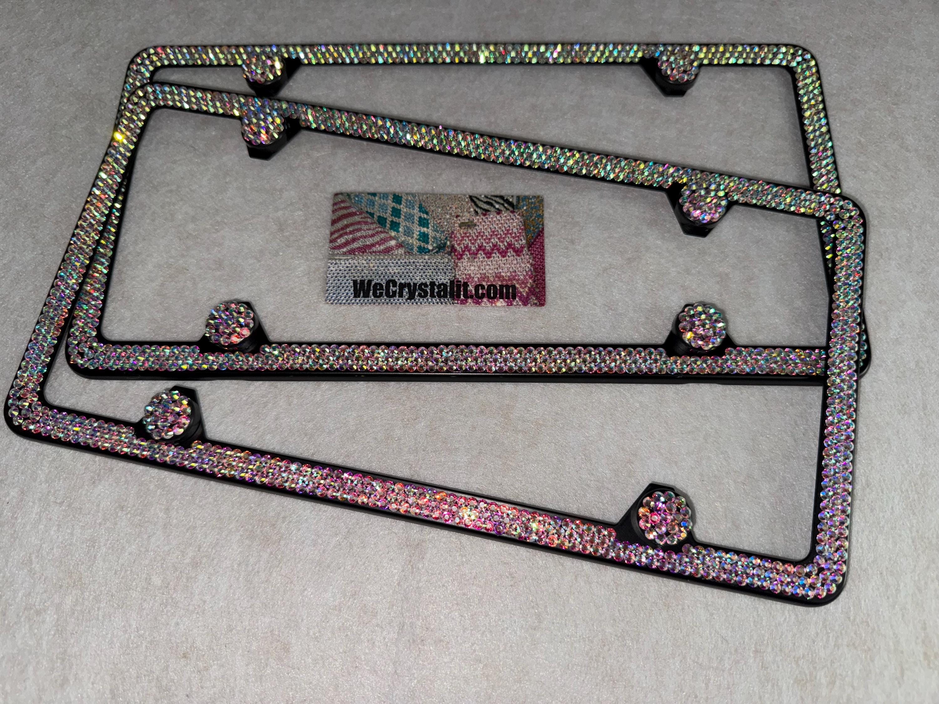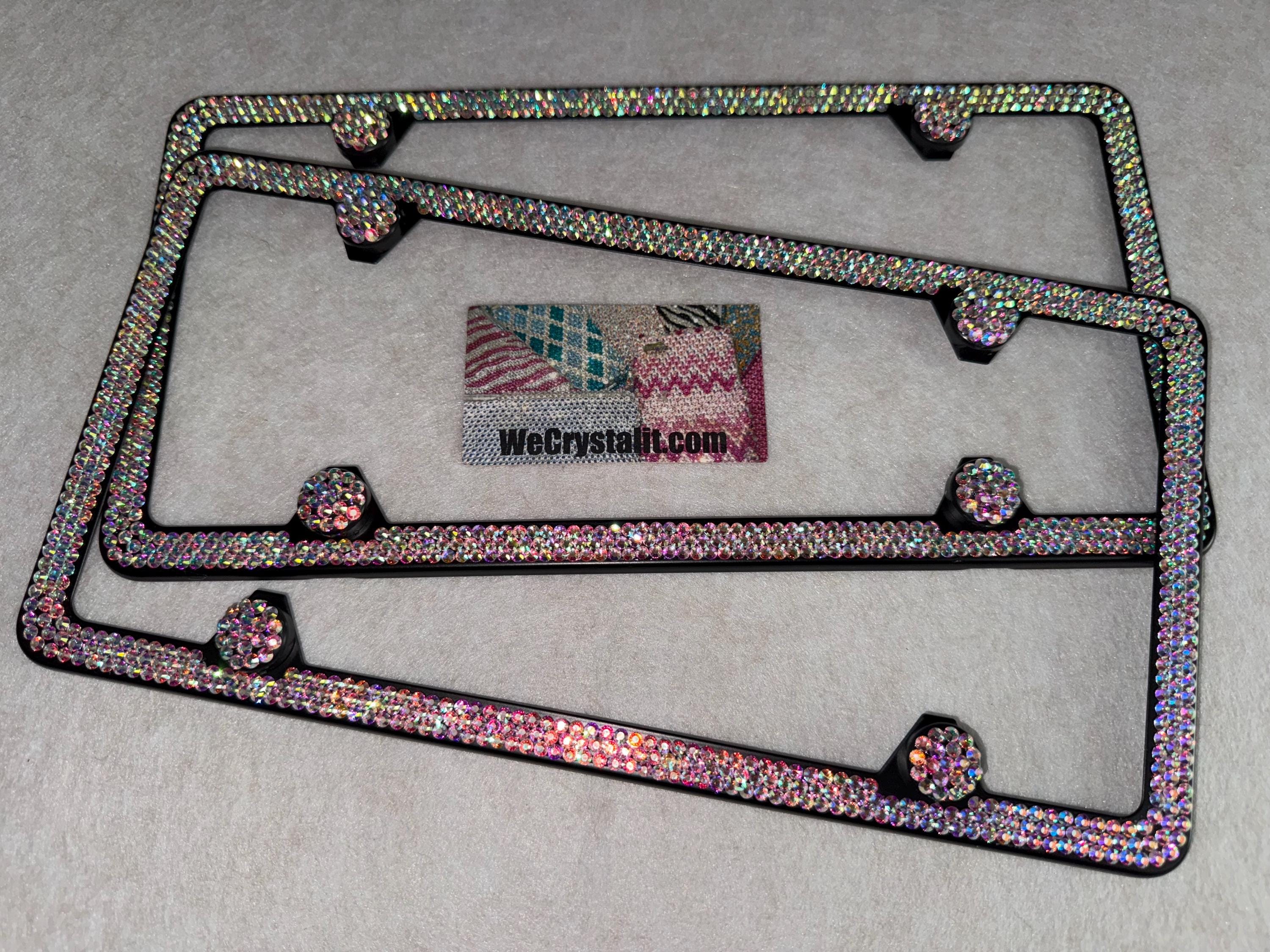 ( Aurora Borealis ) on a black plate Bling License Plate Made with Austrian Crystals Comes with Swarovski Elements with 4 bling bolt covers (17.95 Value) FREE