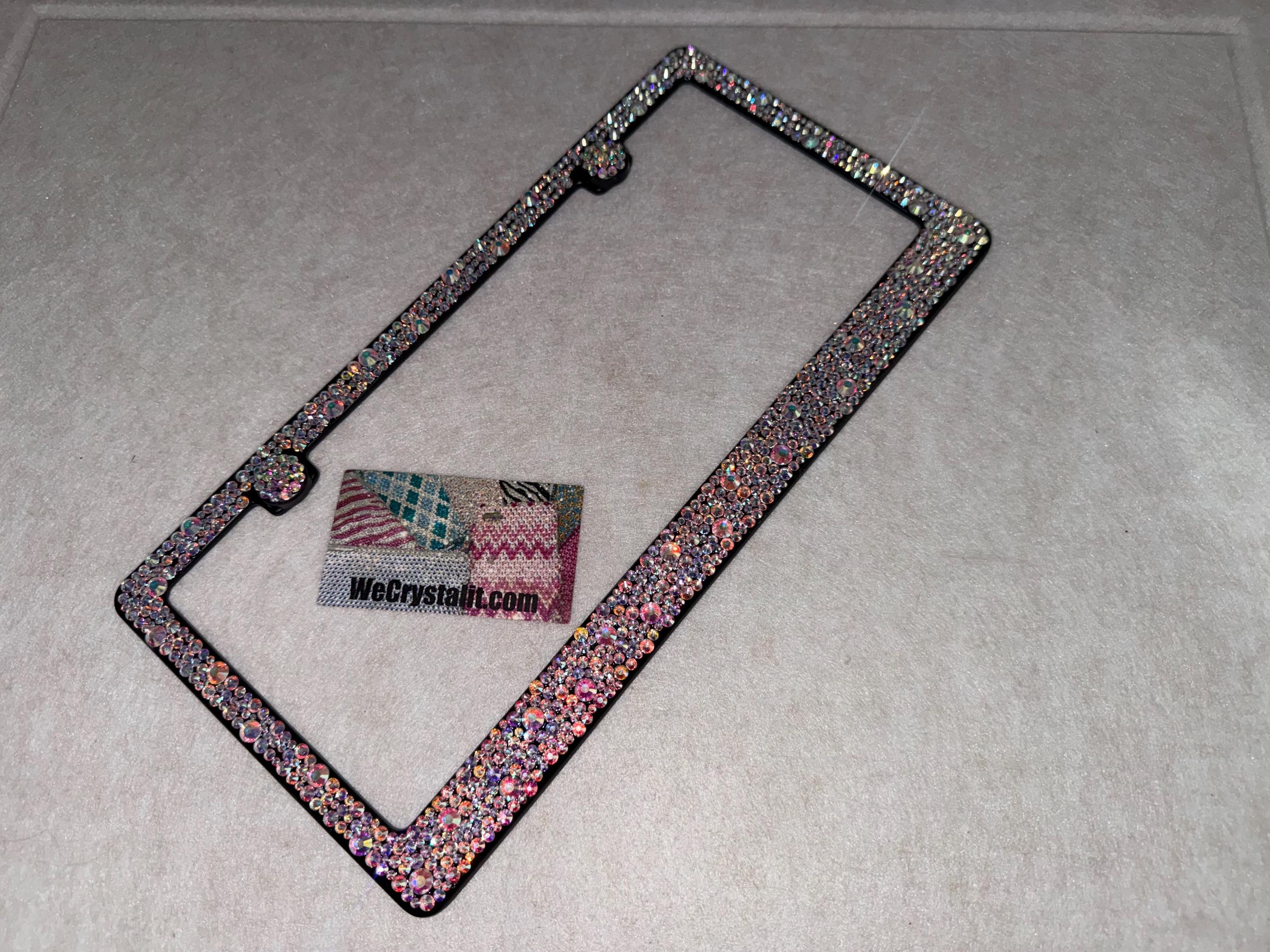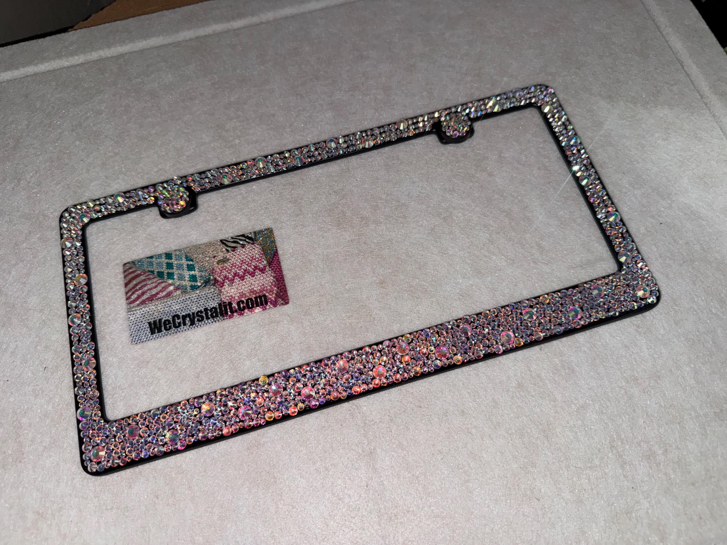 Aurora Borealis Bumpie Multi Sized Bling License Plate Thicker on bottom so you only need two Holes to hold the plate on.