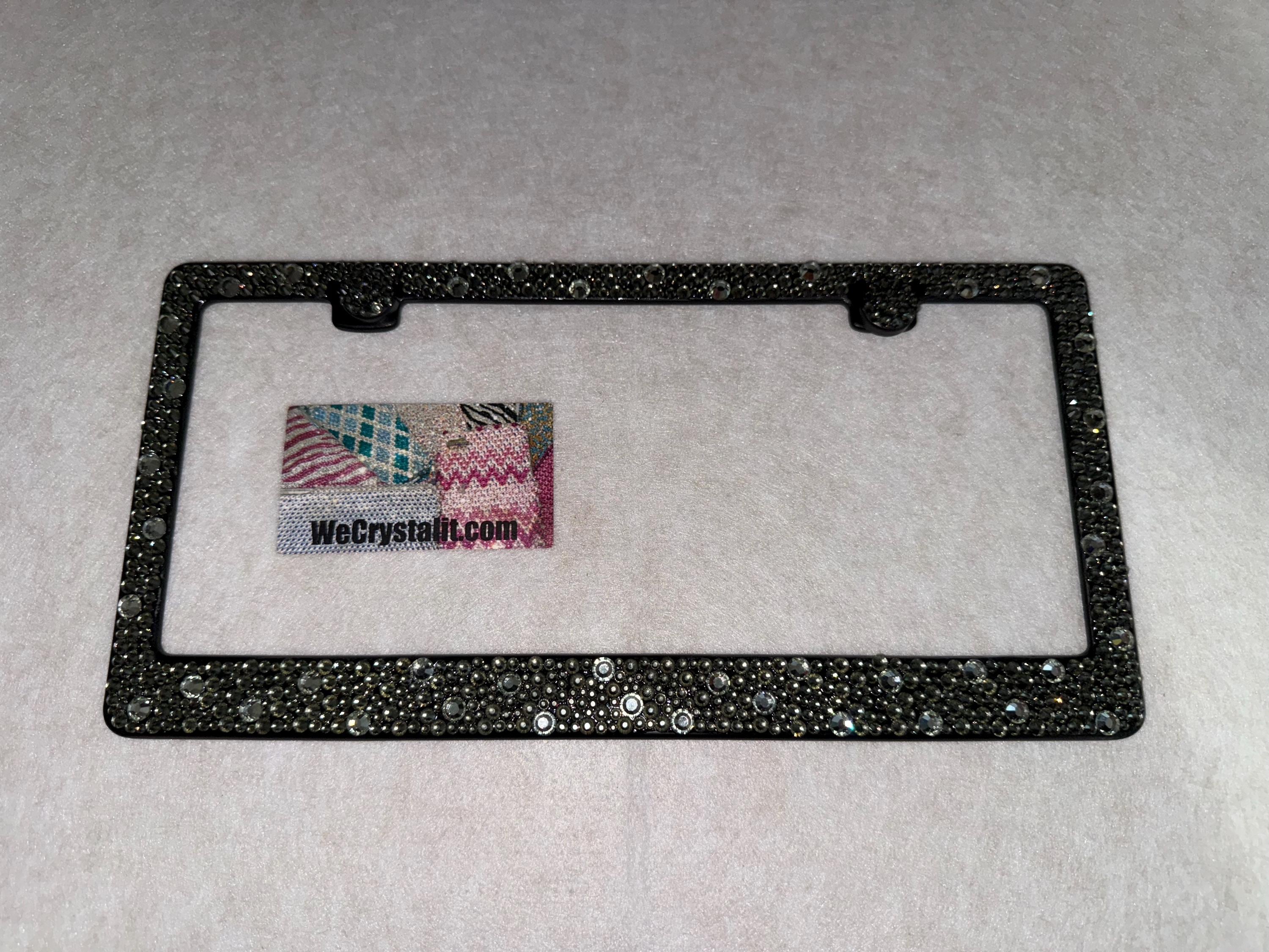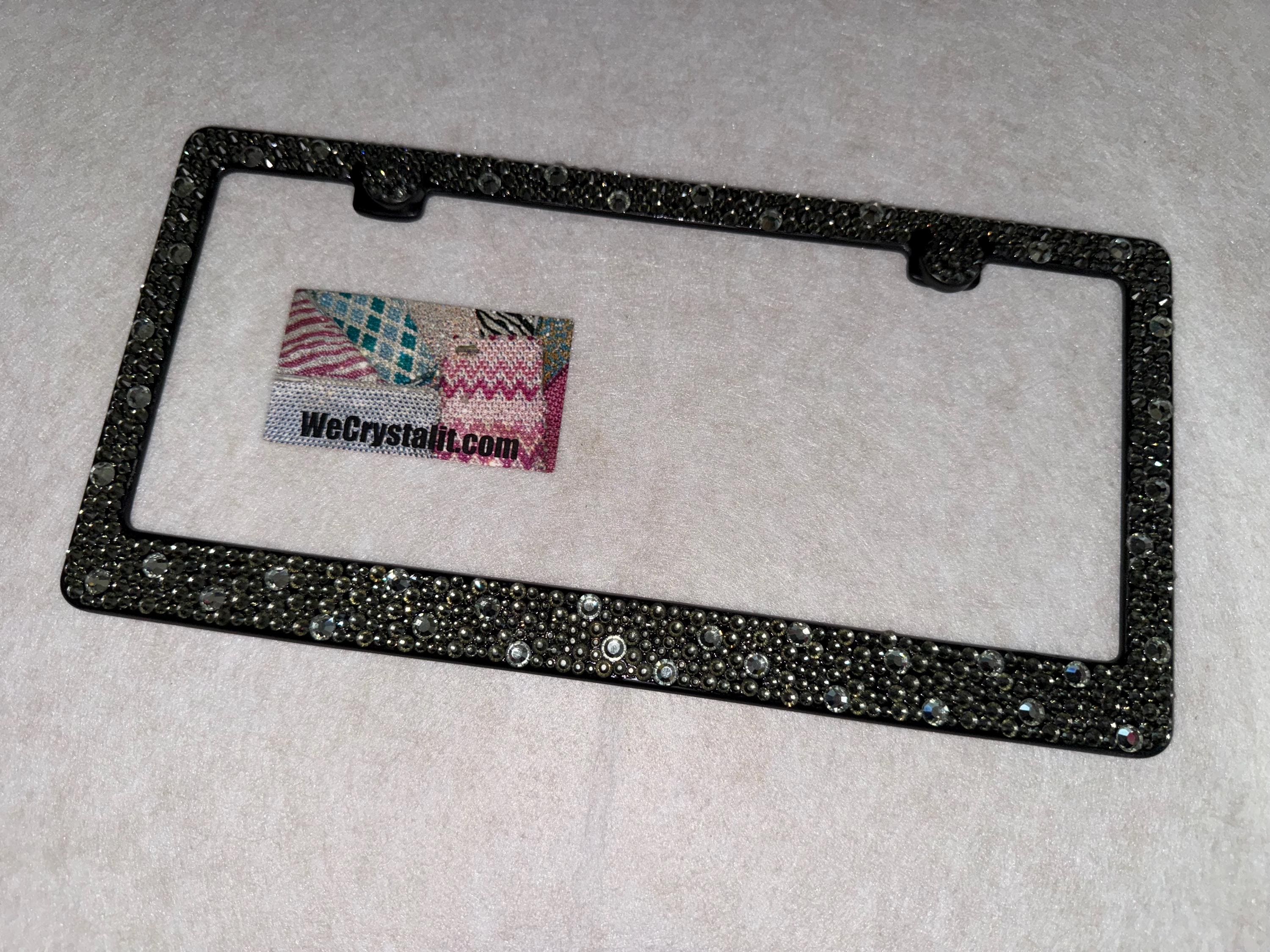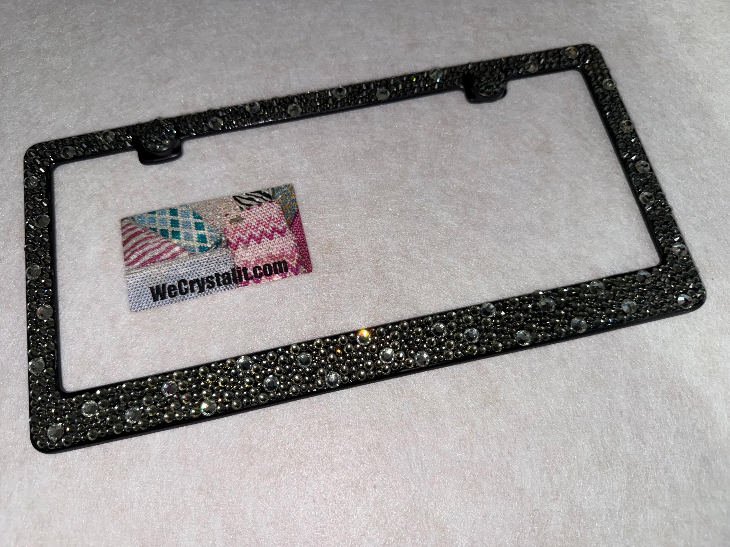 Black Diamond (smoked Gray ) on black bumpie Bling License Plate Thicker on bottom so you only need two Holes to hold the plate on.