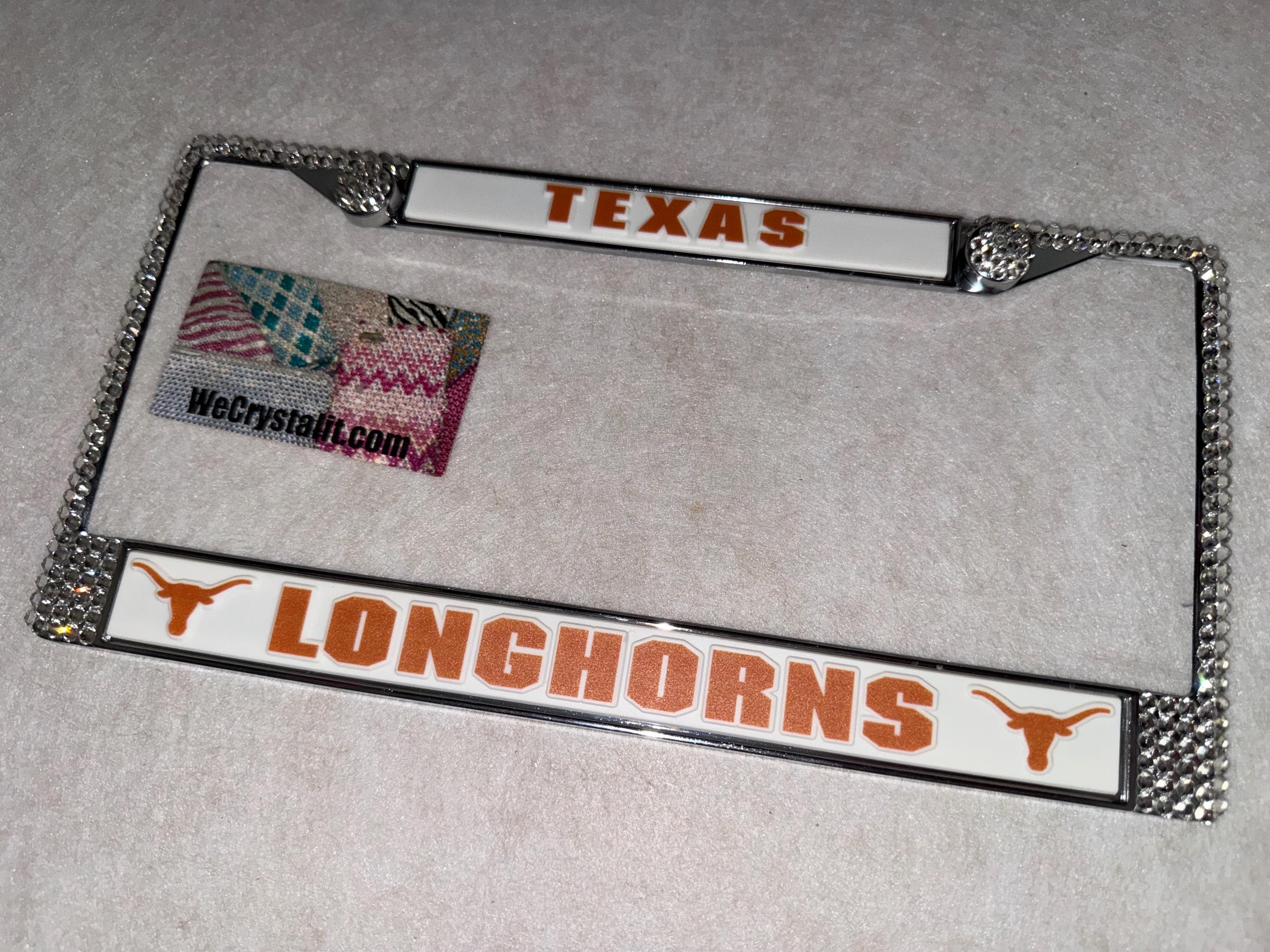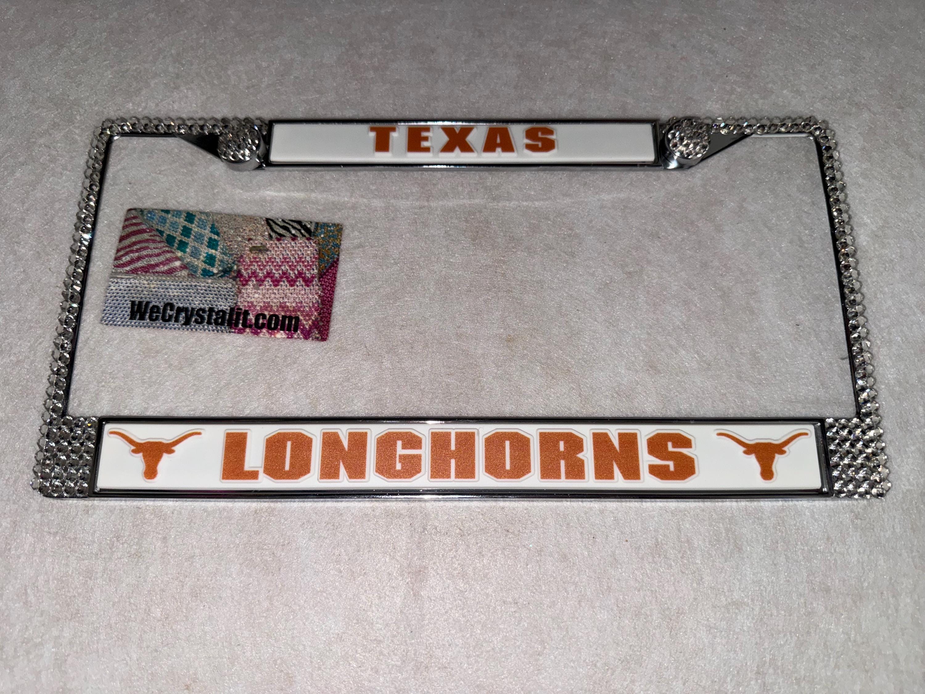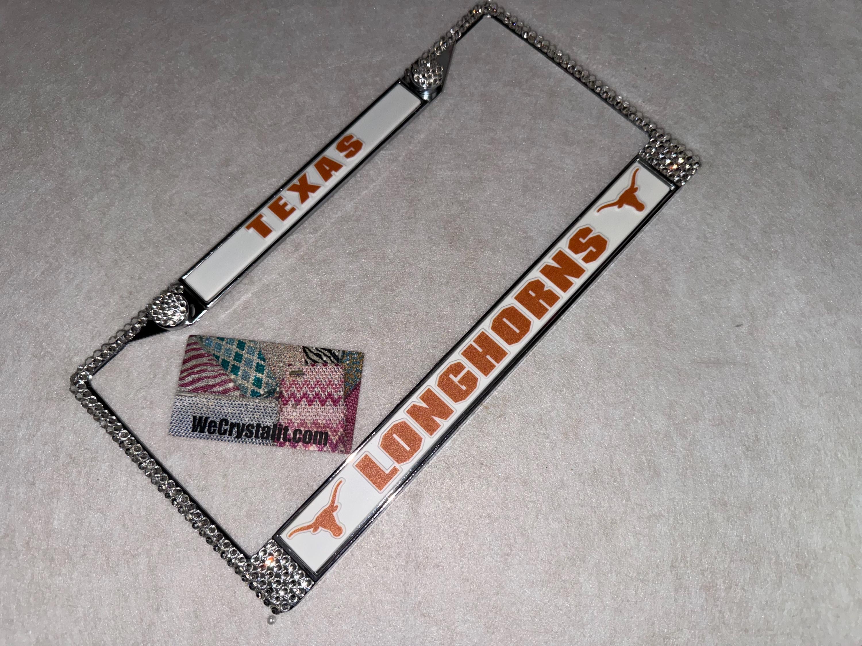 Longhorns Texas Sports Bling License Plate Thicker on bottom so you only need two Holes to hold the plate on.