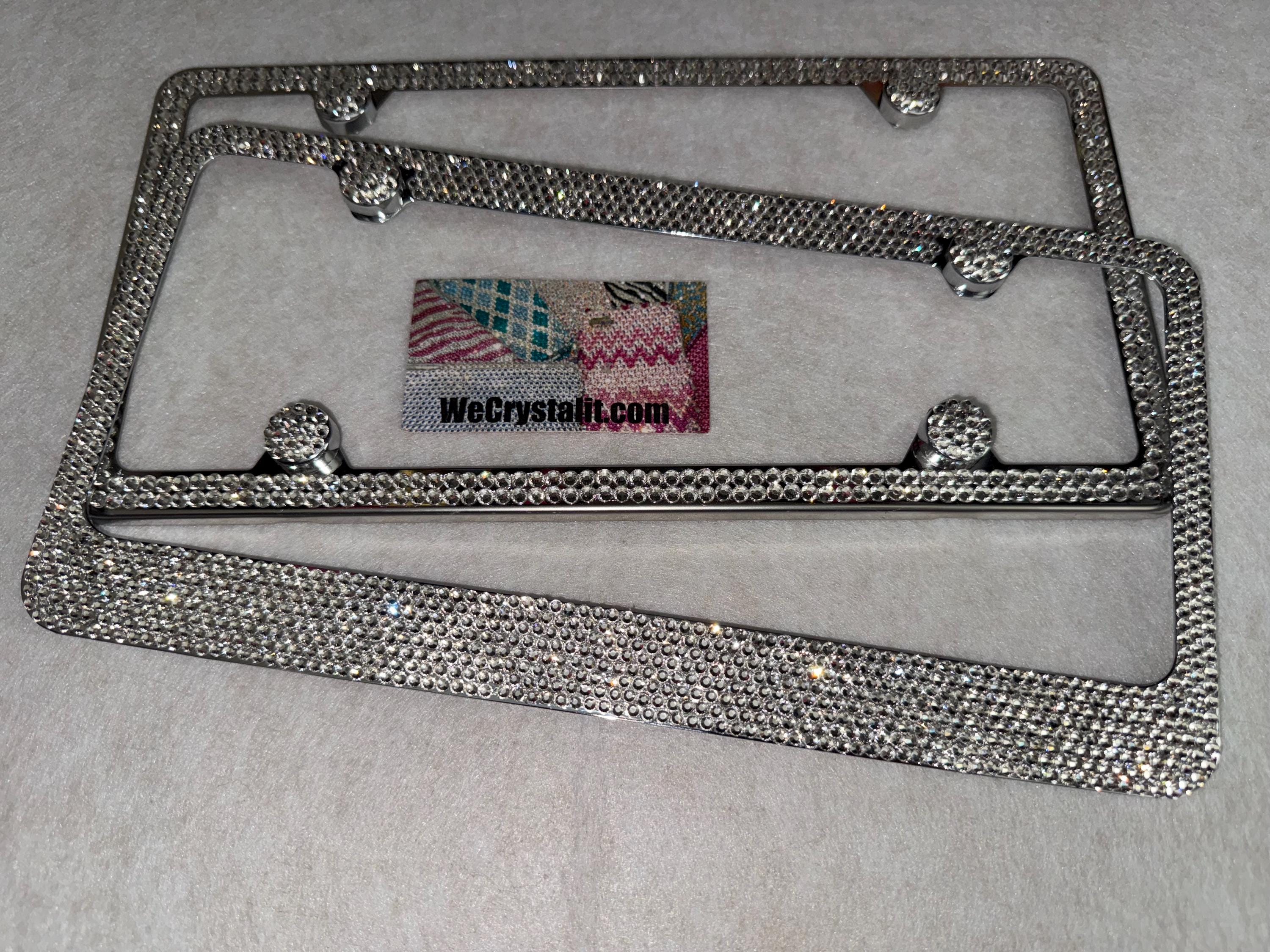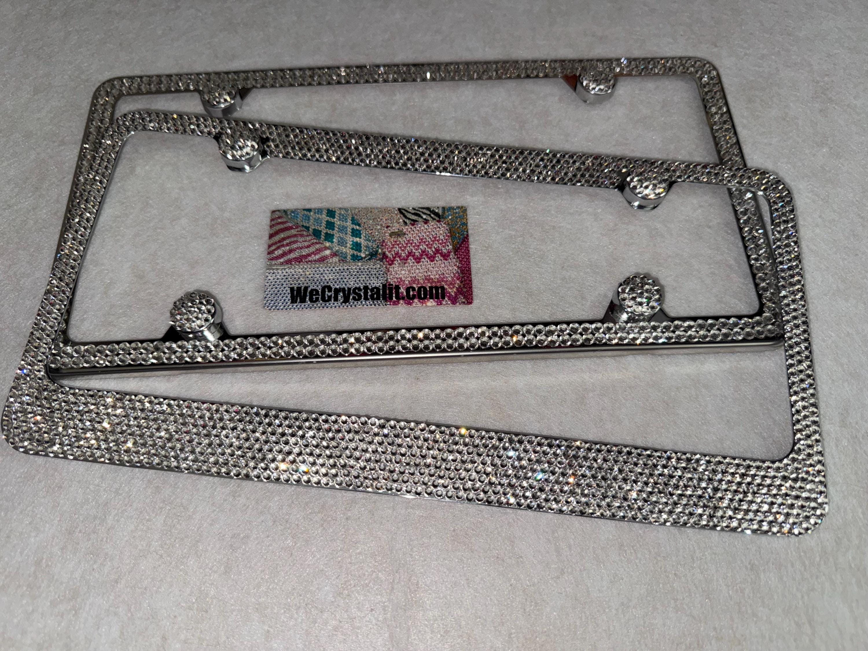 set of (2) 2 & 8 Row Clear Crystal on a Silver plate Bling License Plate Made with Swarovski Crystals Comes with Swarovski Elements with 4 bling bolt covers (17.95 Value) FREE