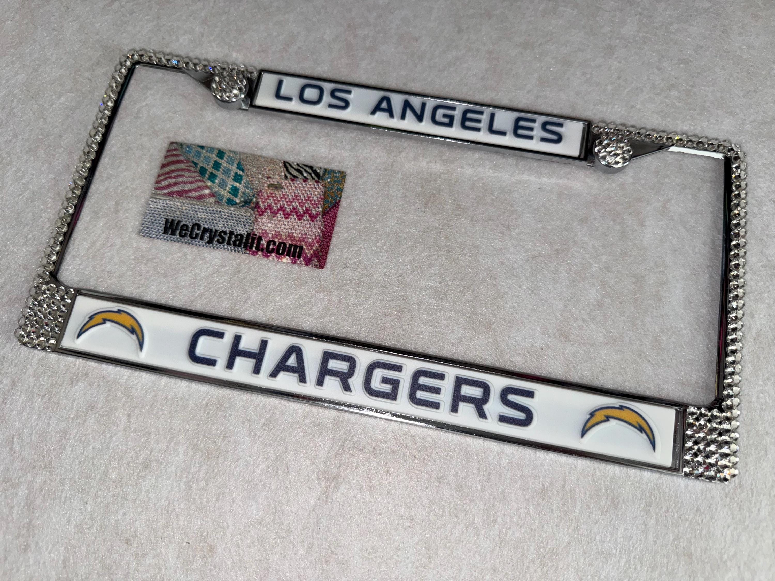 Los Angeles Chargers Football Sports Bling License Plate Thicker on bottom so you only need two Holes to hold the plate on.