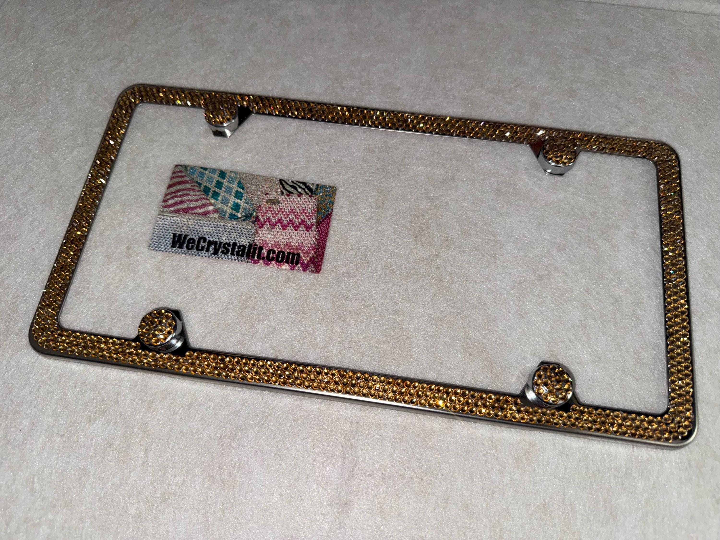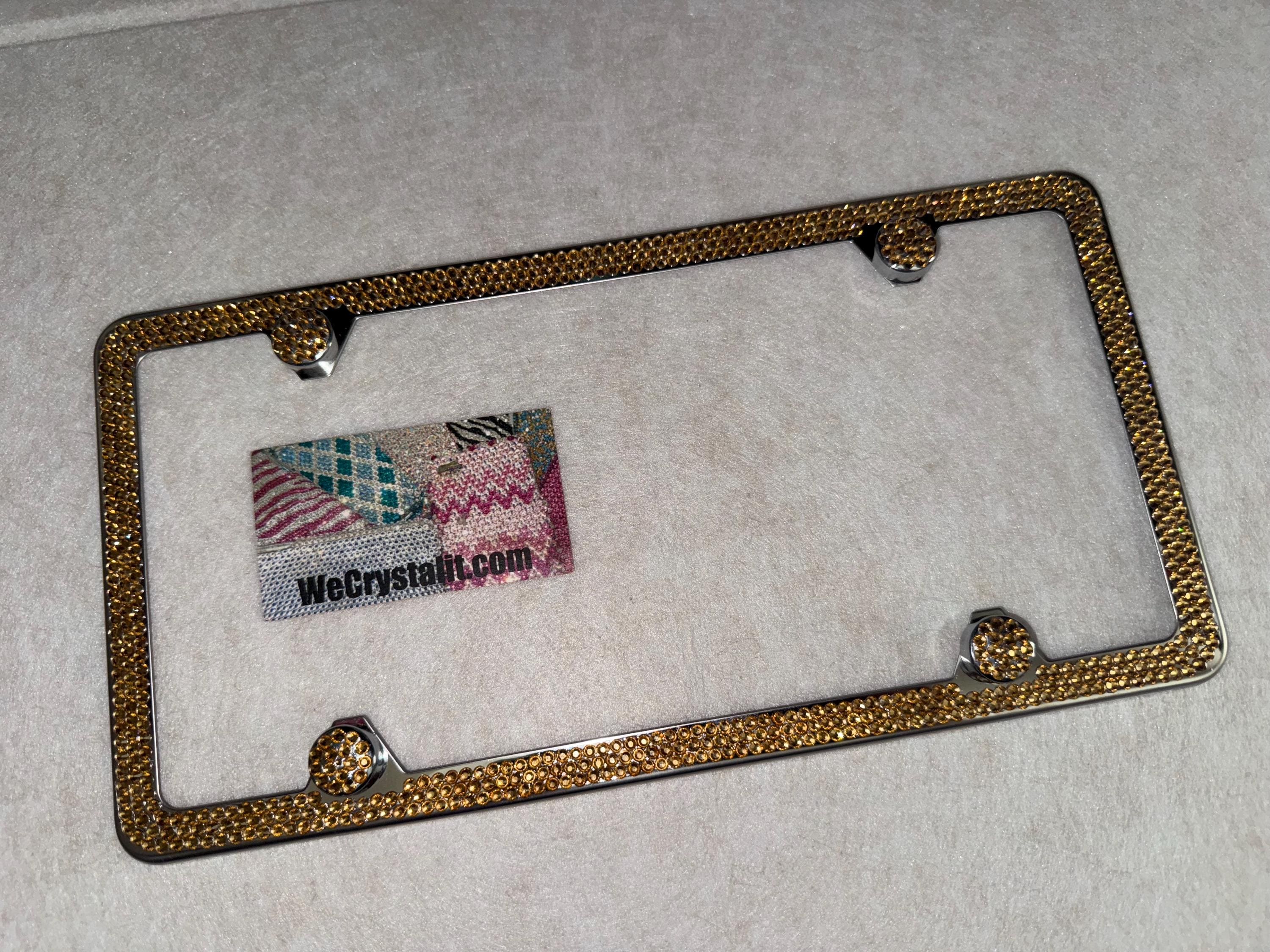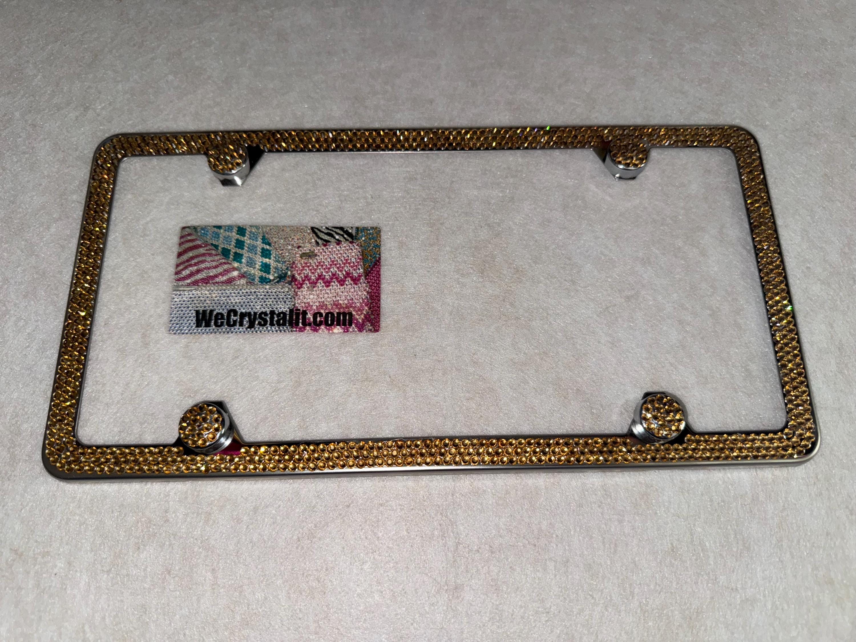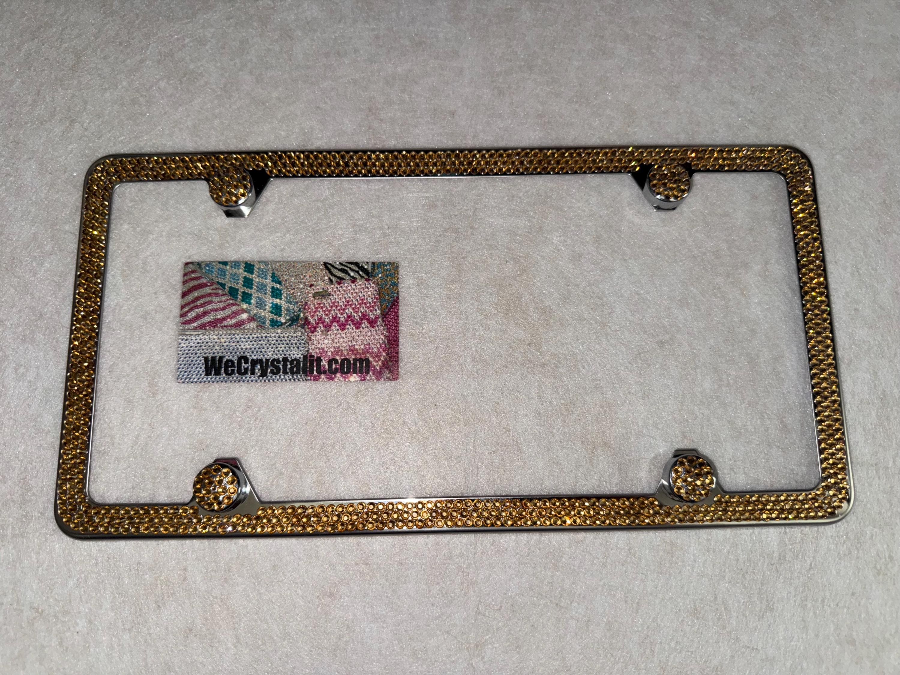3 Row Gold Light Colorado Topaz on a silver plate Bling License Plate Made with Austrian Crystals Comes with Swarovski Elements with 4 bling bolt covers (17.95 Value) FREE