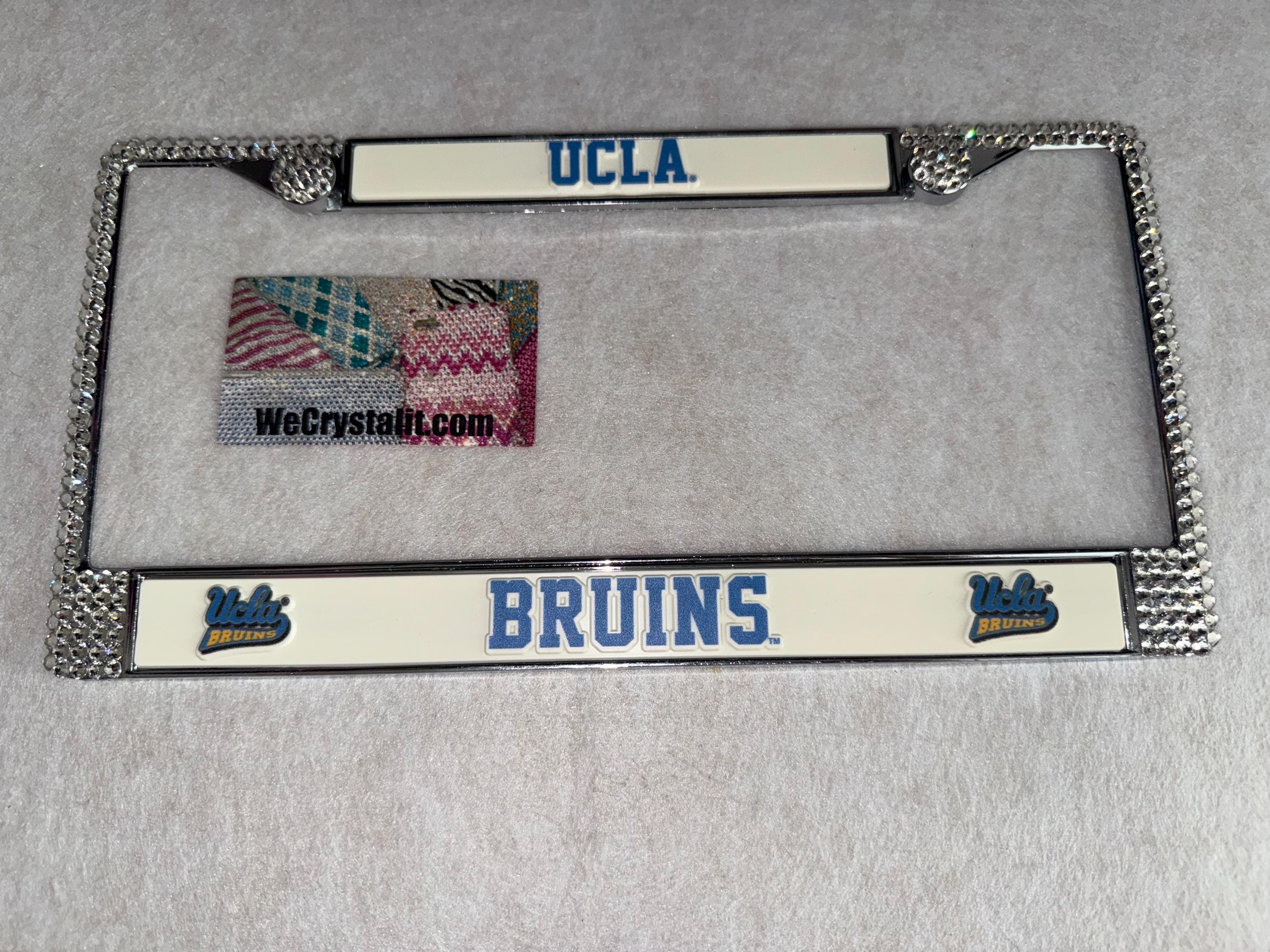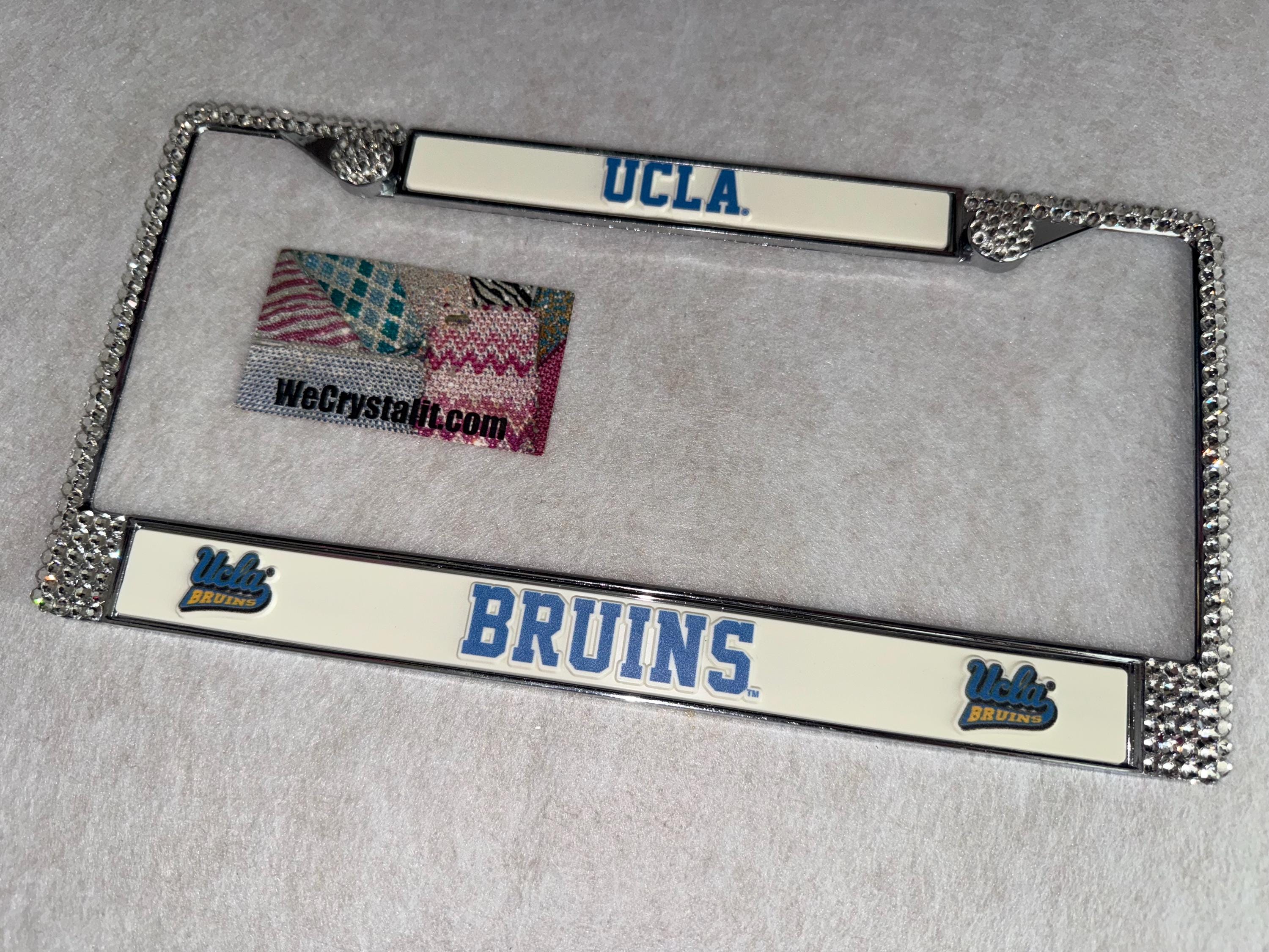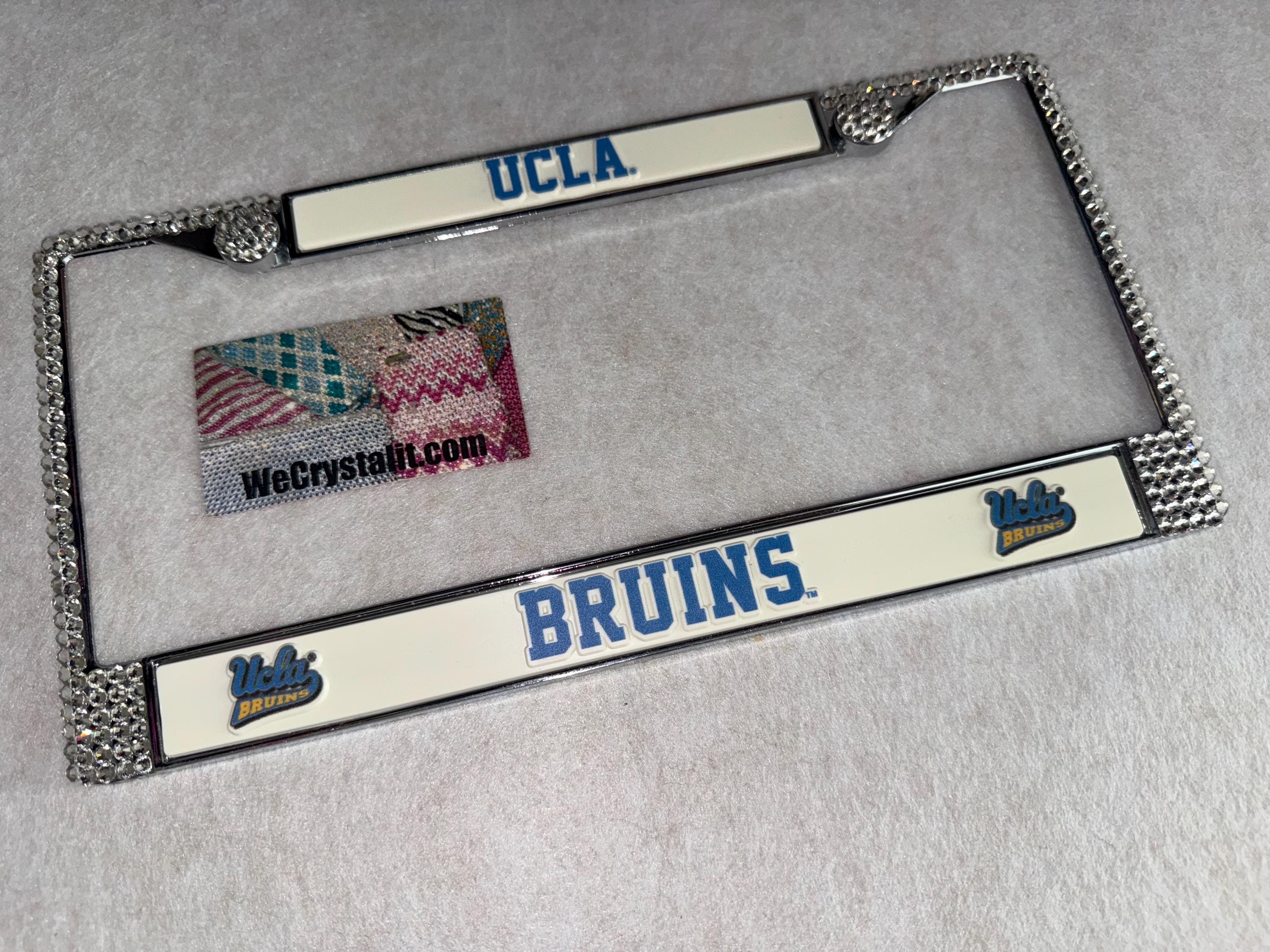 UCLA Bruins Sports Bling License Plate Thicker on bottom so you only need two Holes to hold the plate on.