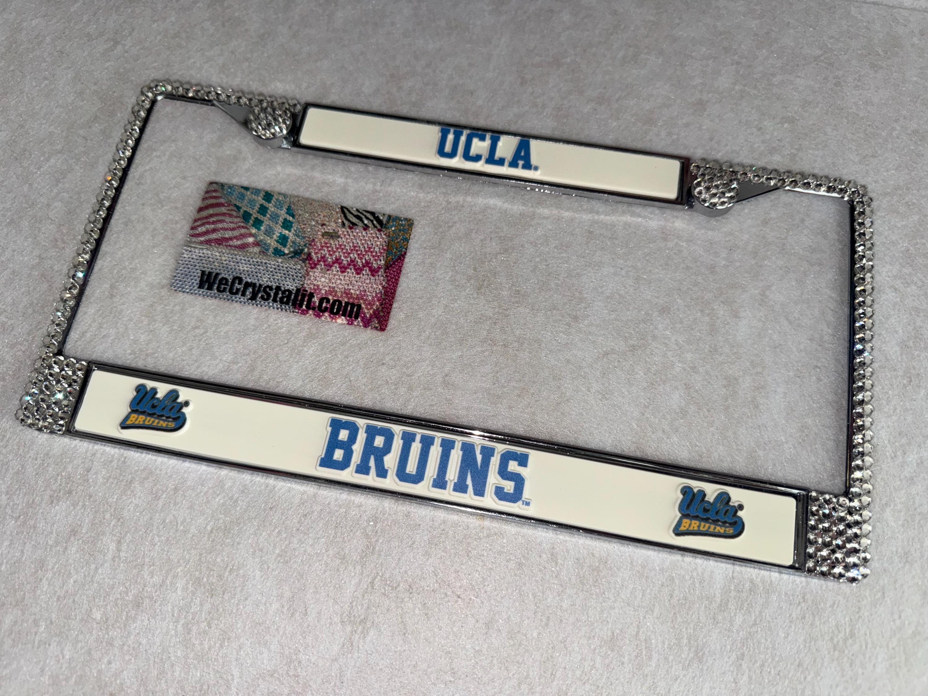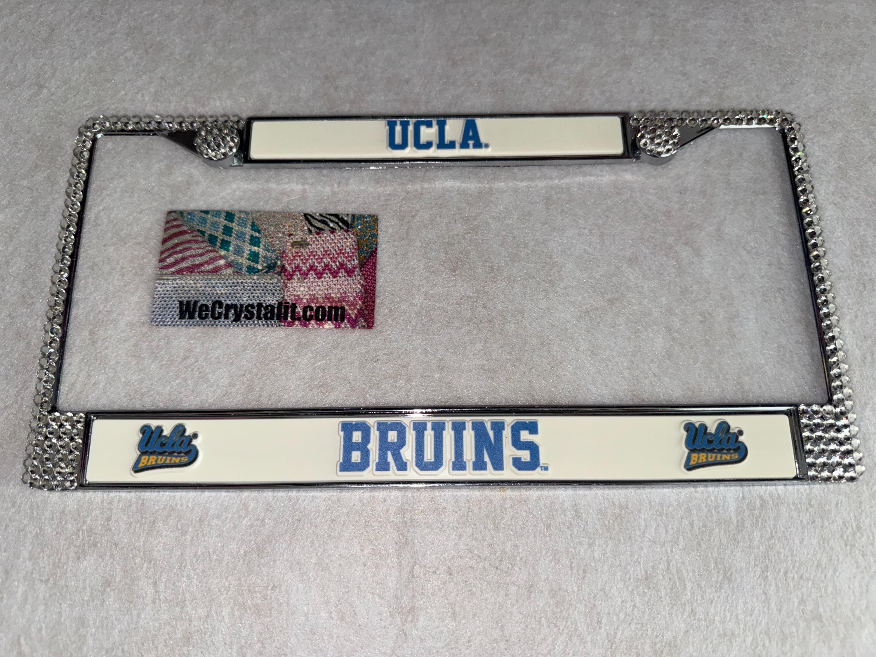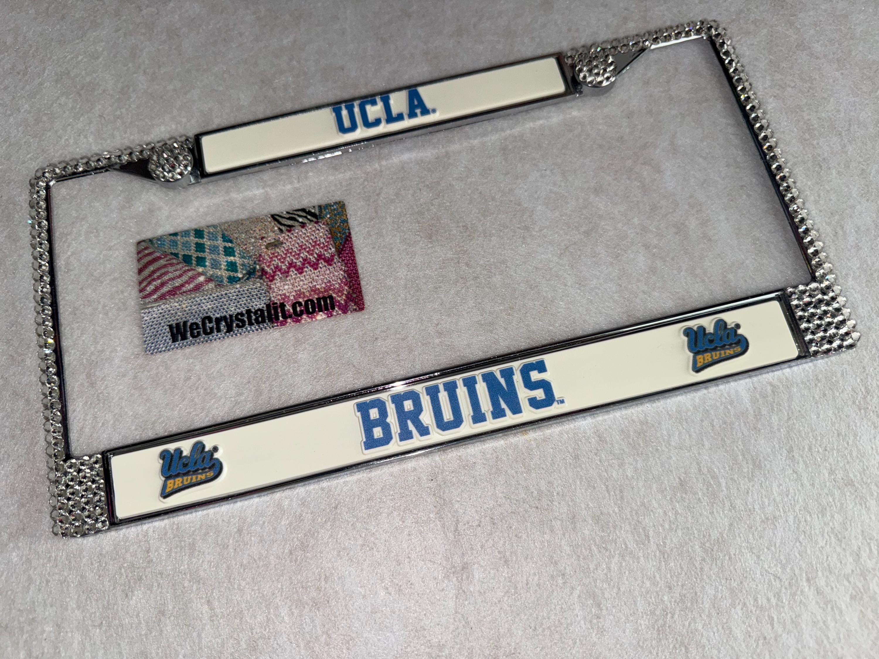 UCLA Bruins Sports Bling License Plate Thicker on bottom so you only need two Holes to hold the plate on.