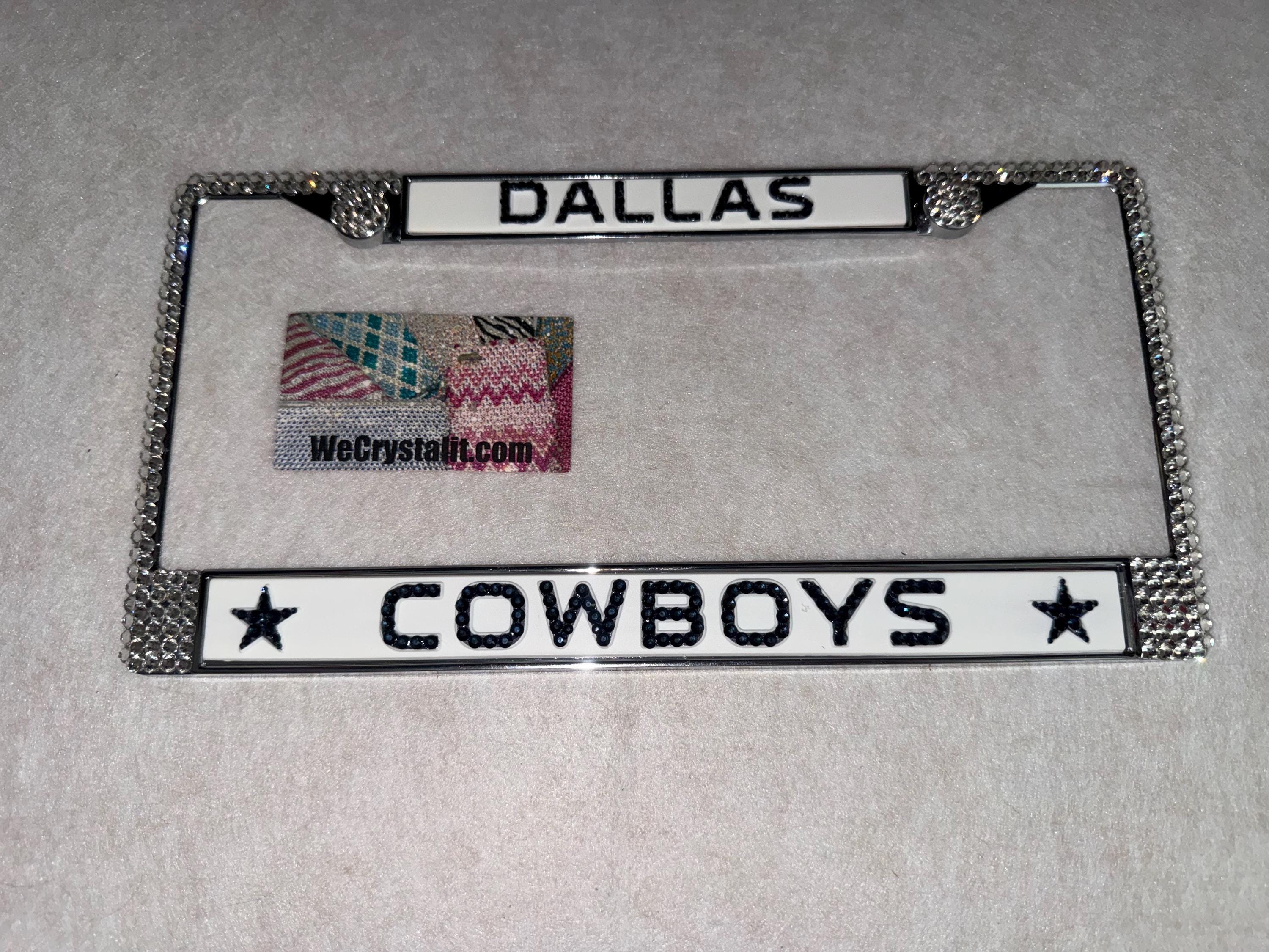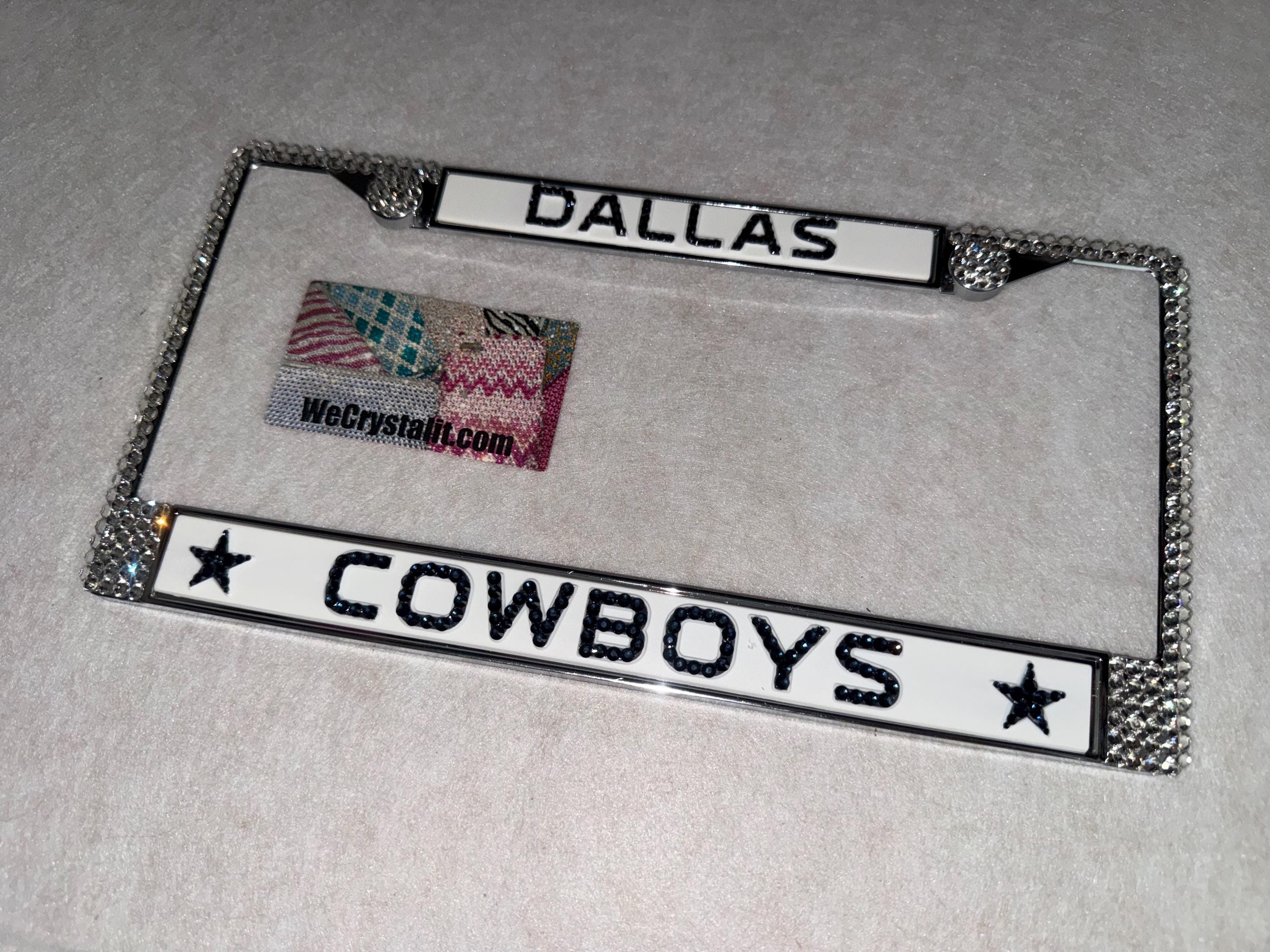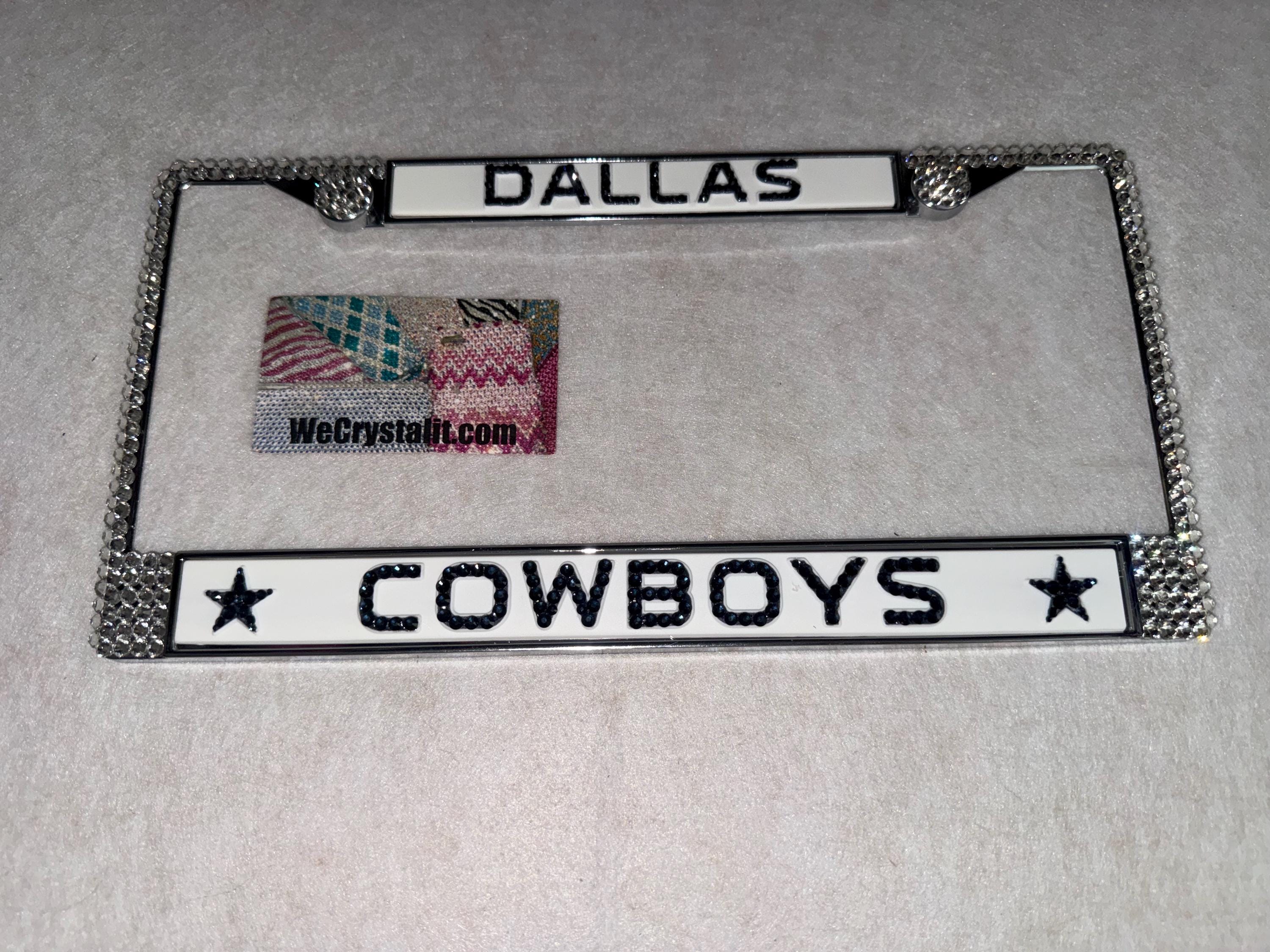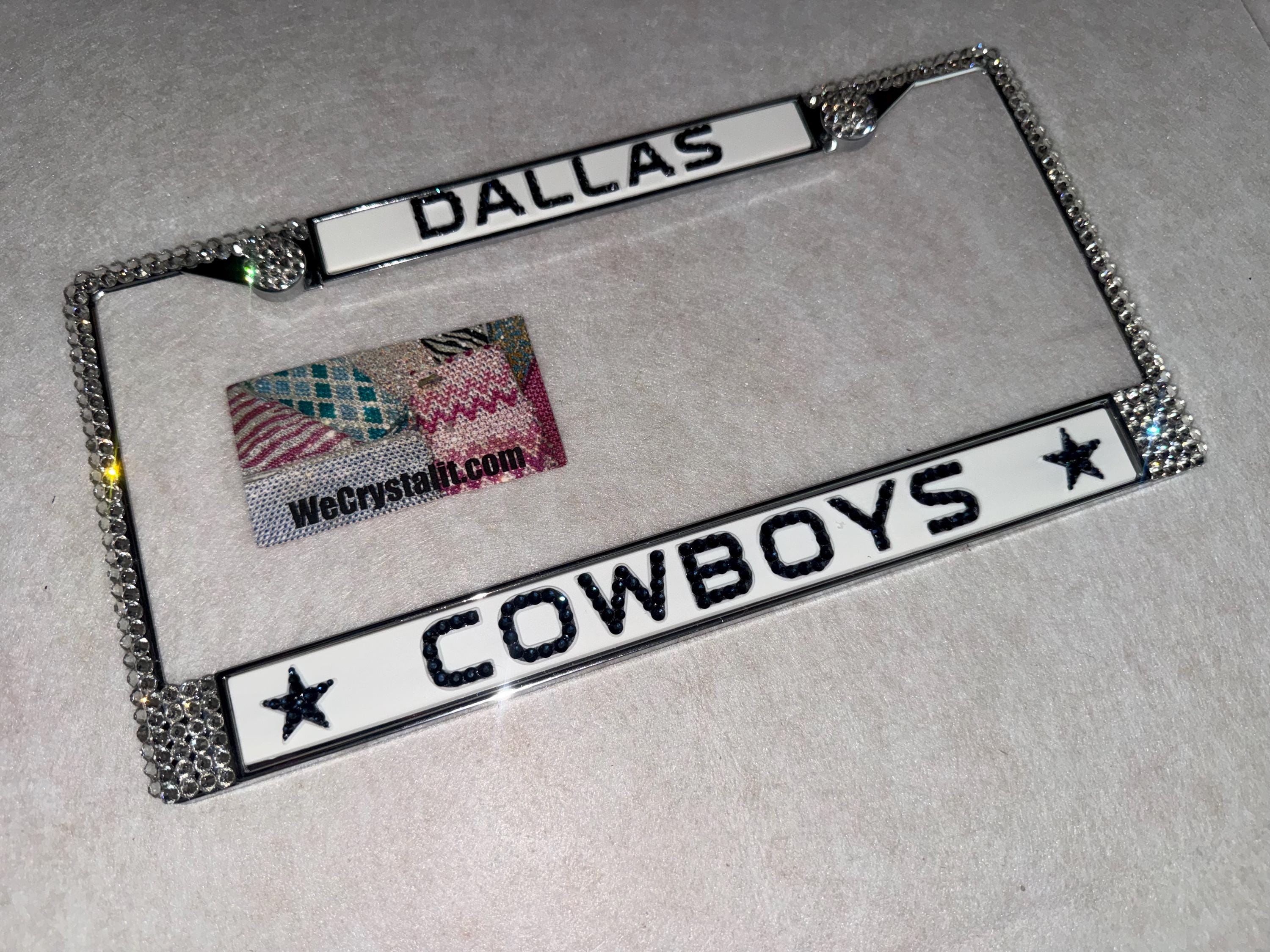 Dallas Cowboys Football Sports Bling License Plate Thicker on bottom so you only need two Holes to hold the plate on.