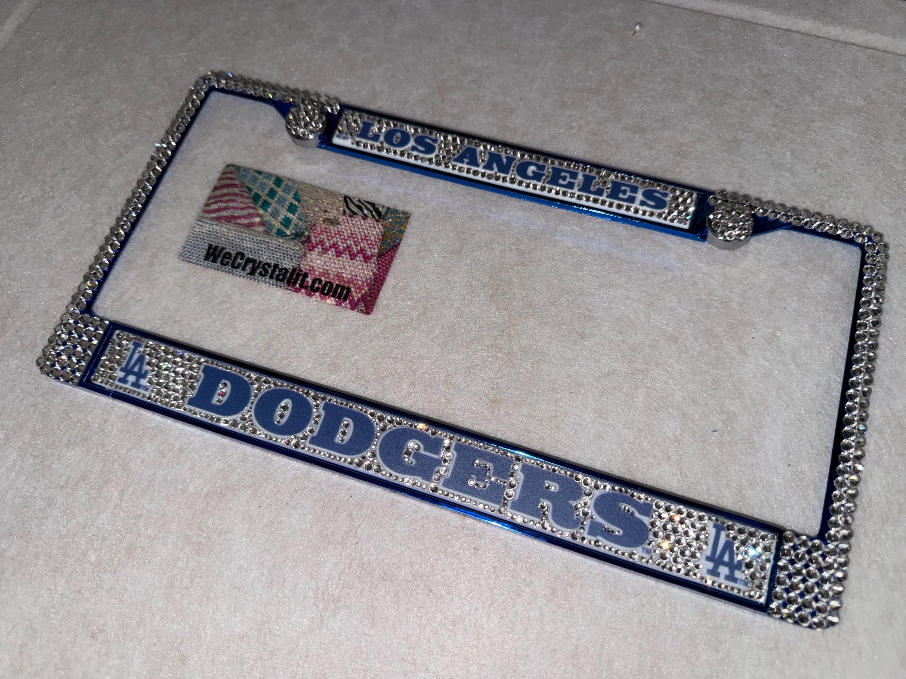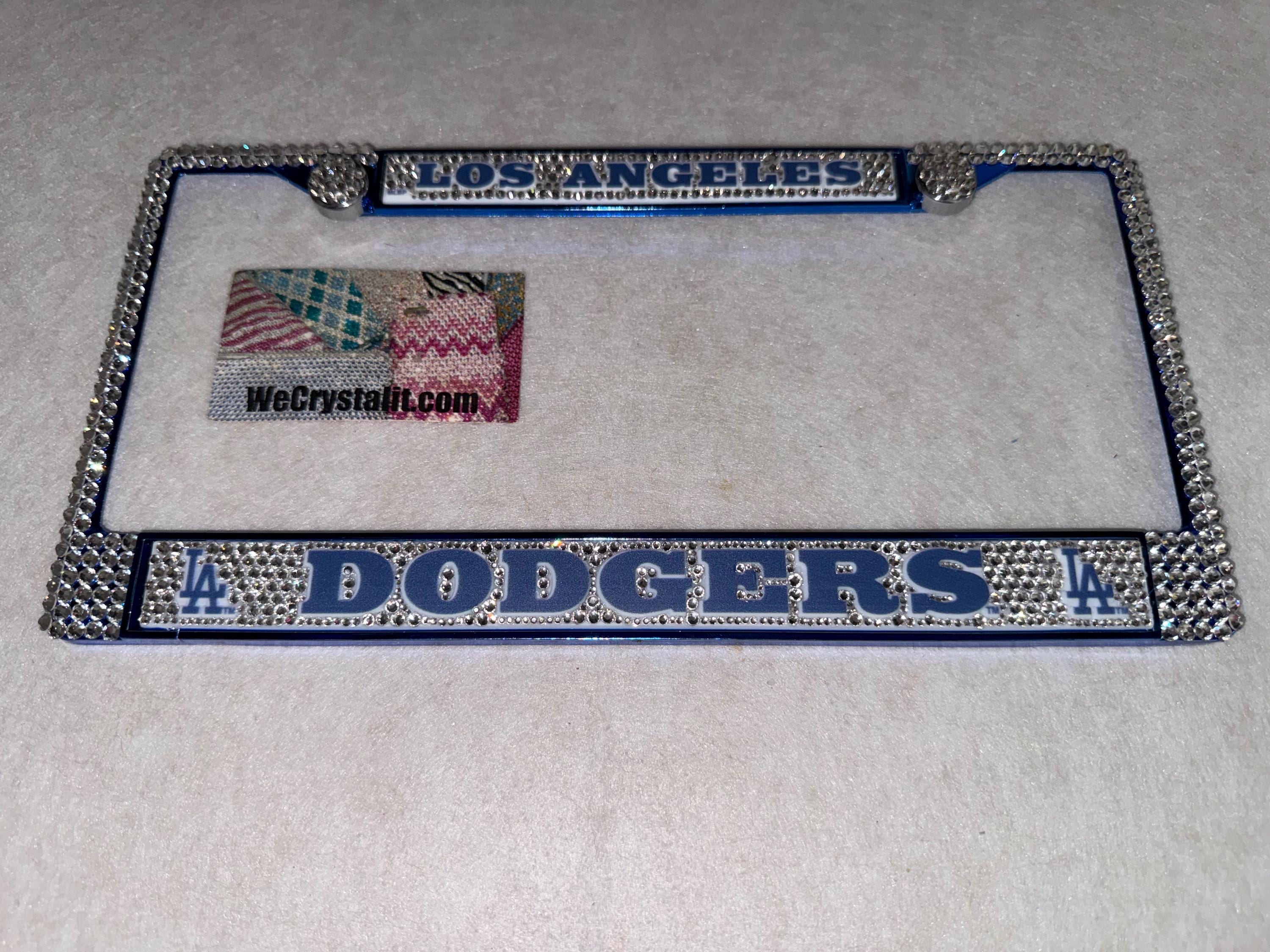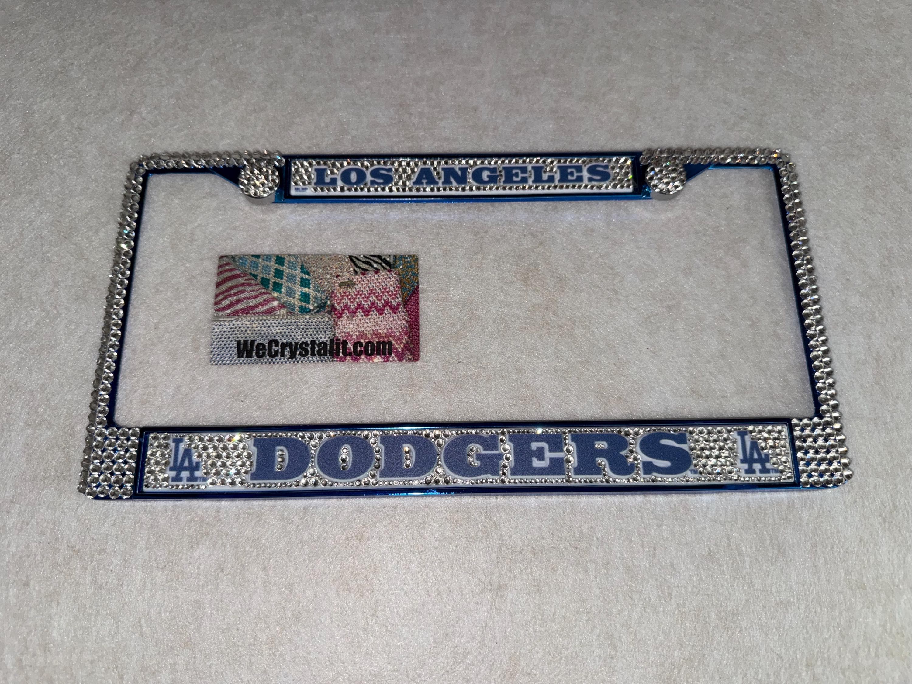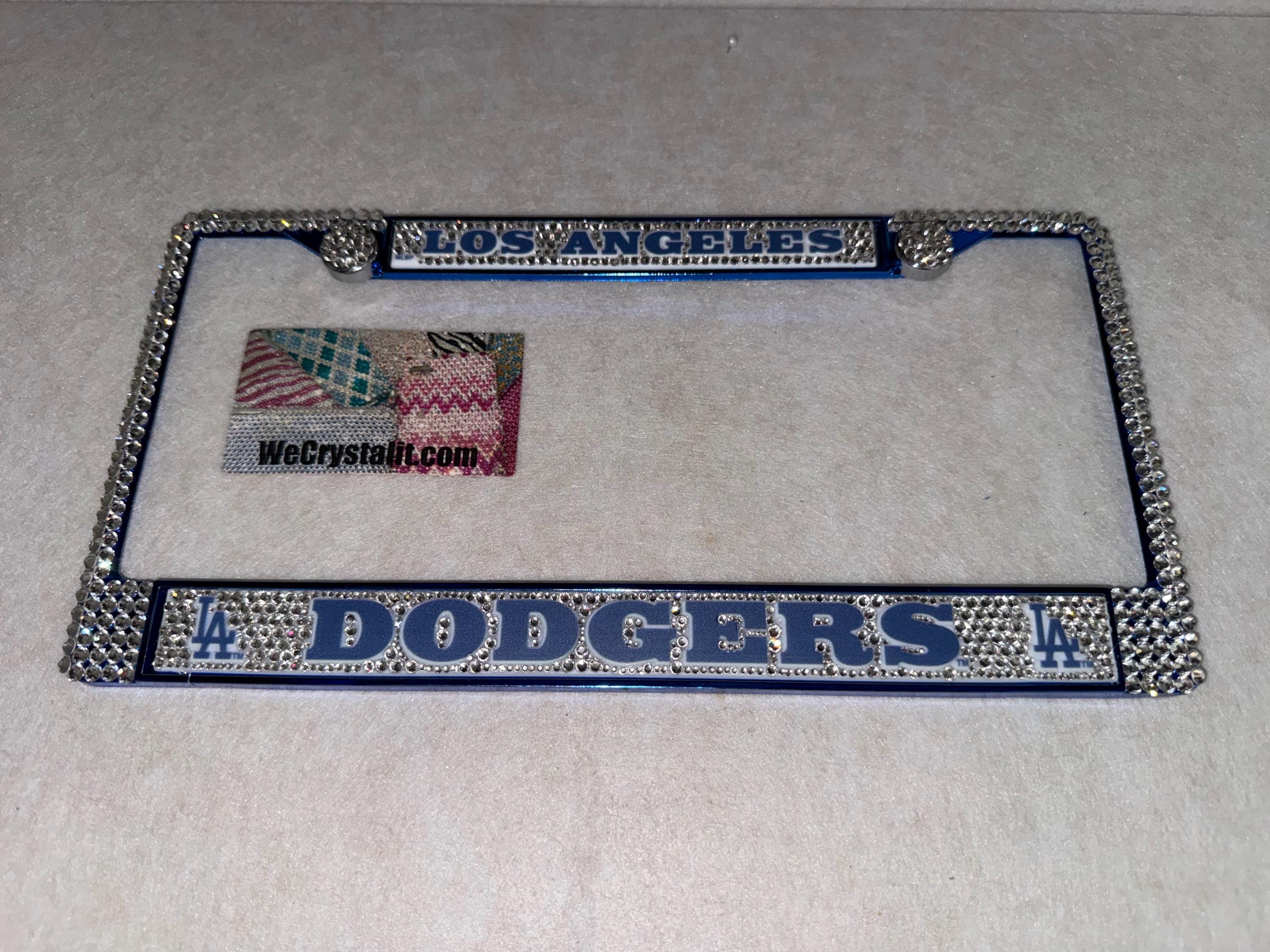 Los Angeles Dodgers baseball Sports Bling License Plate Thicker on bottom so you only need two Holes to hold the plate on.
