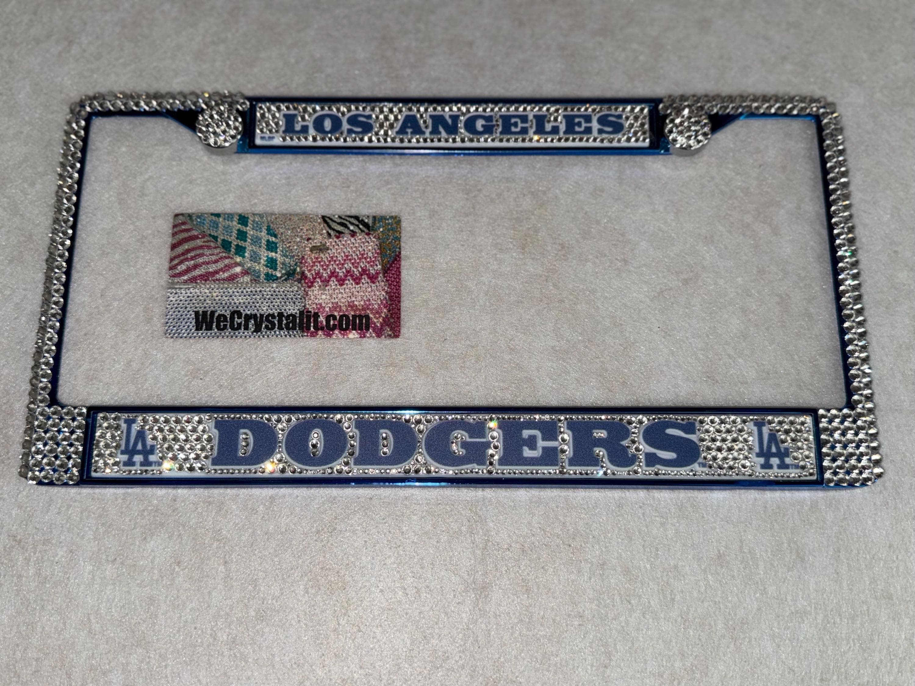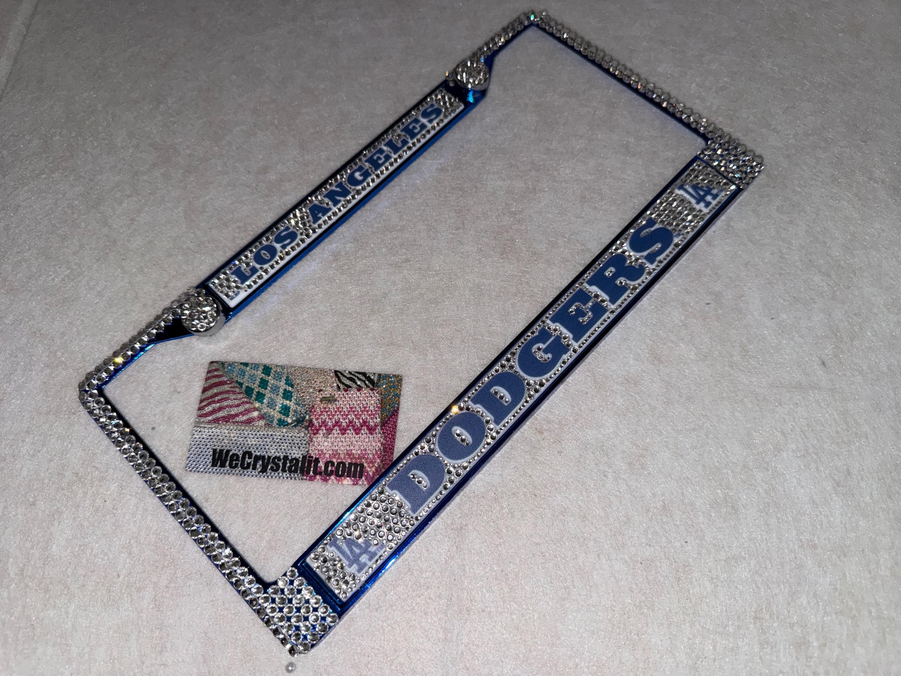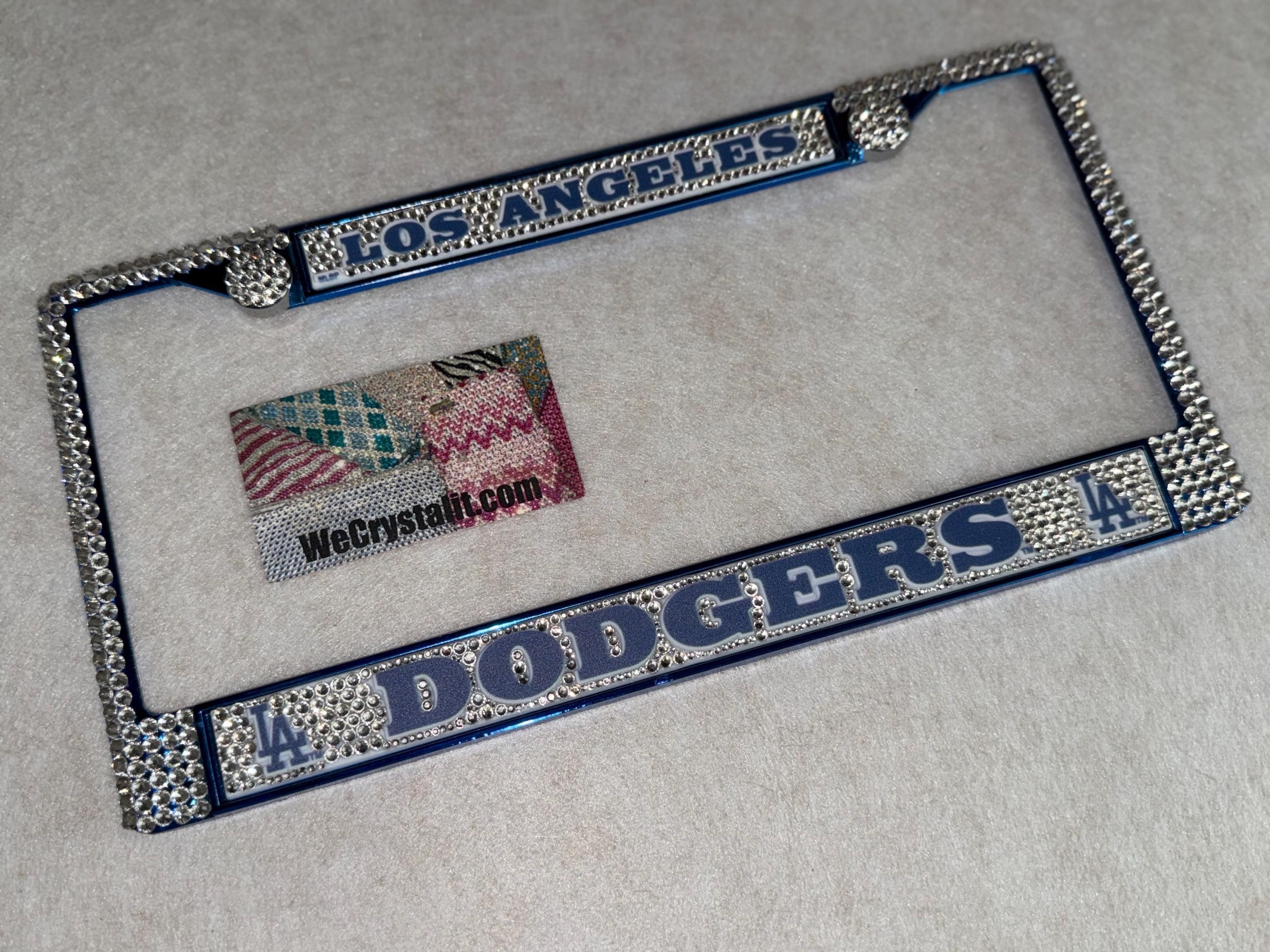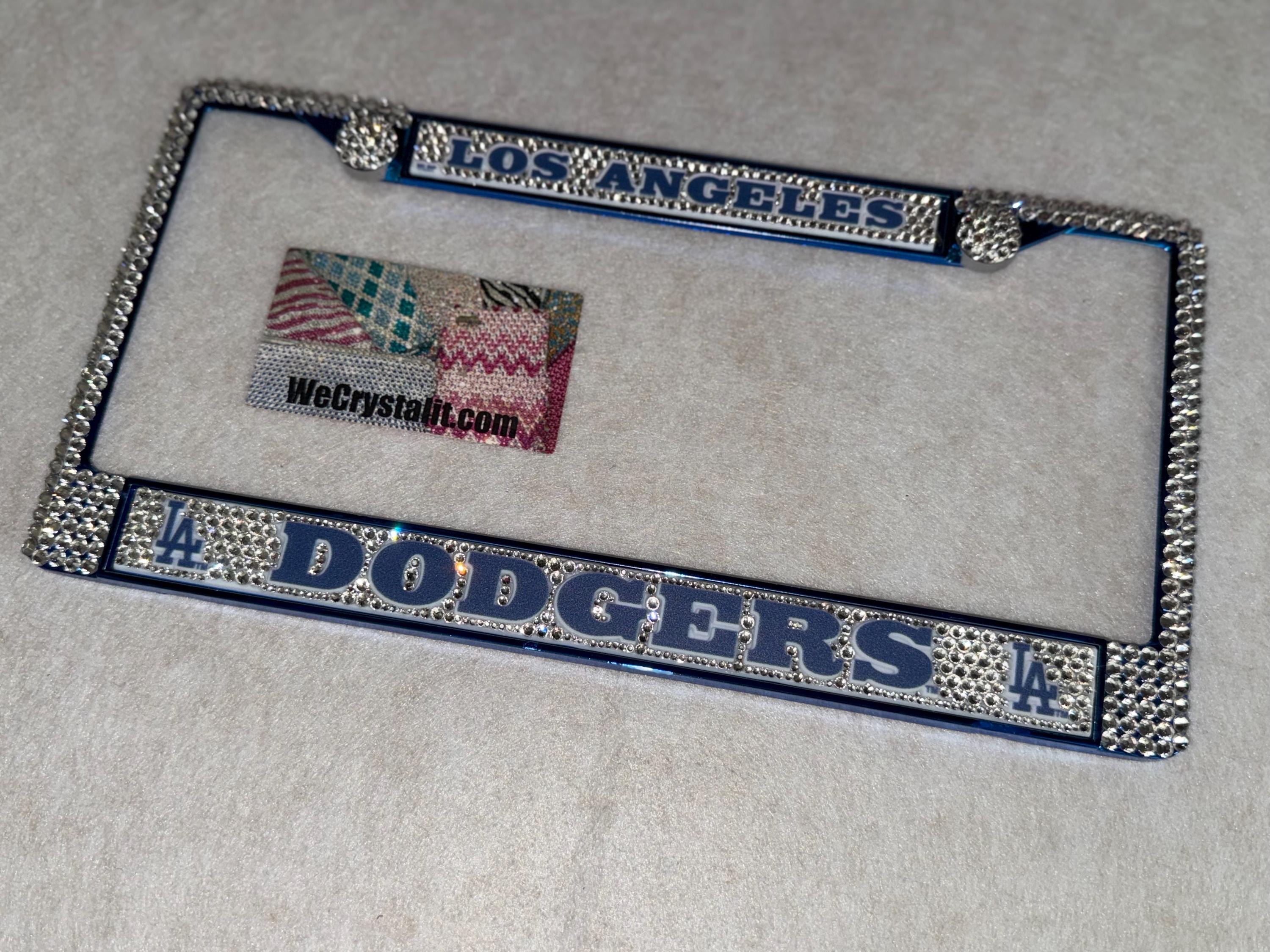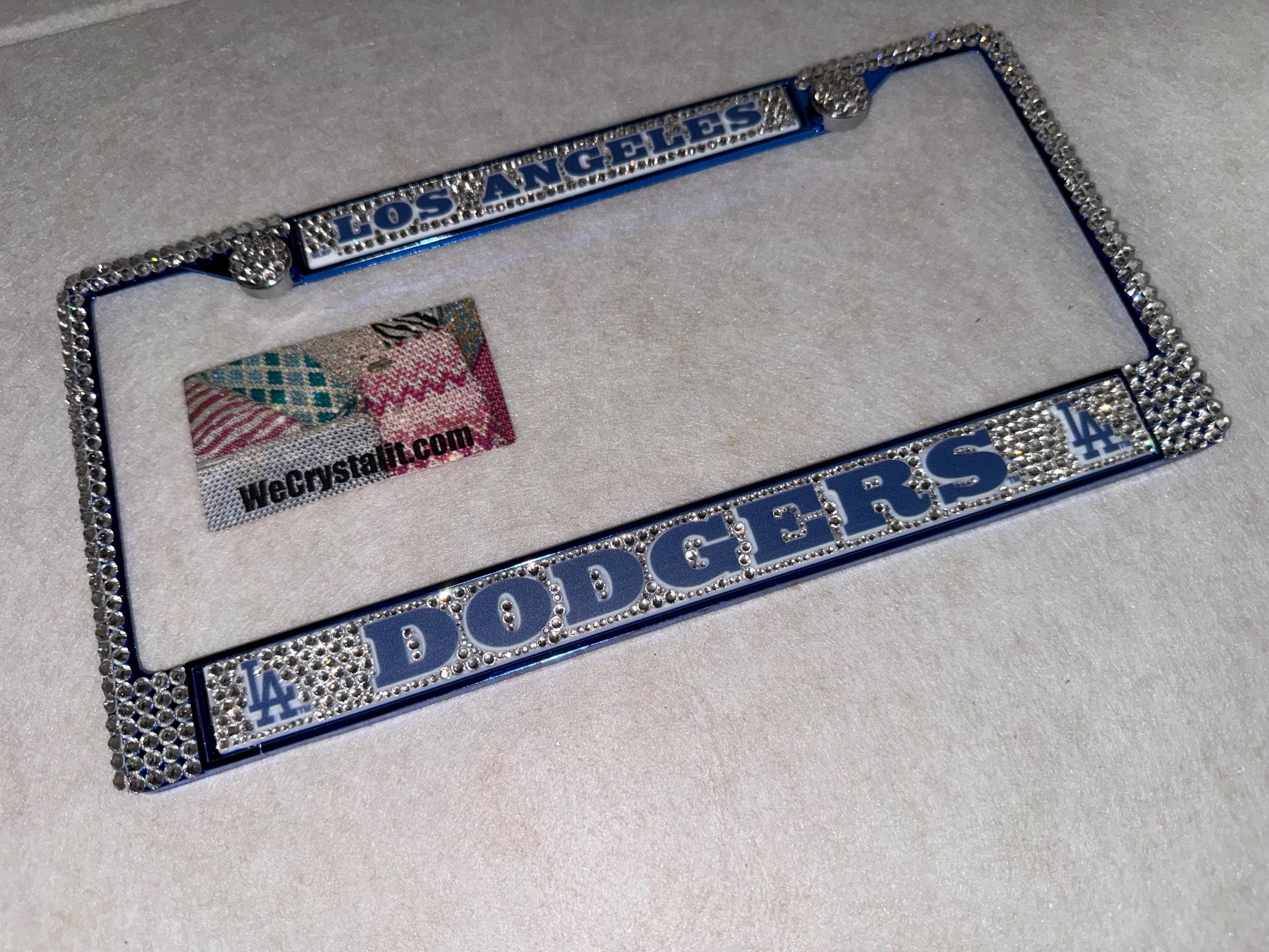 Los Angeles Dodgers baseball Sports Bling License Plate Thicker on bottom so you only need two Holes to hold the plate on.