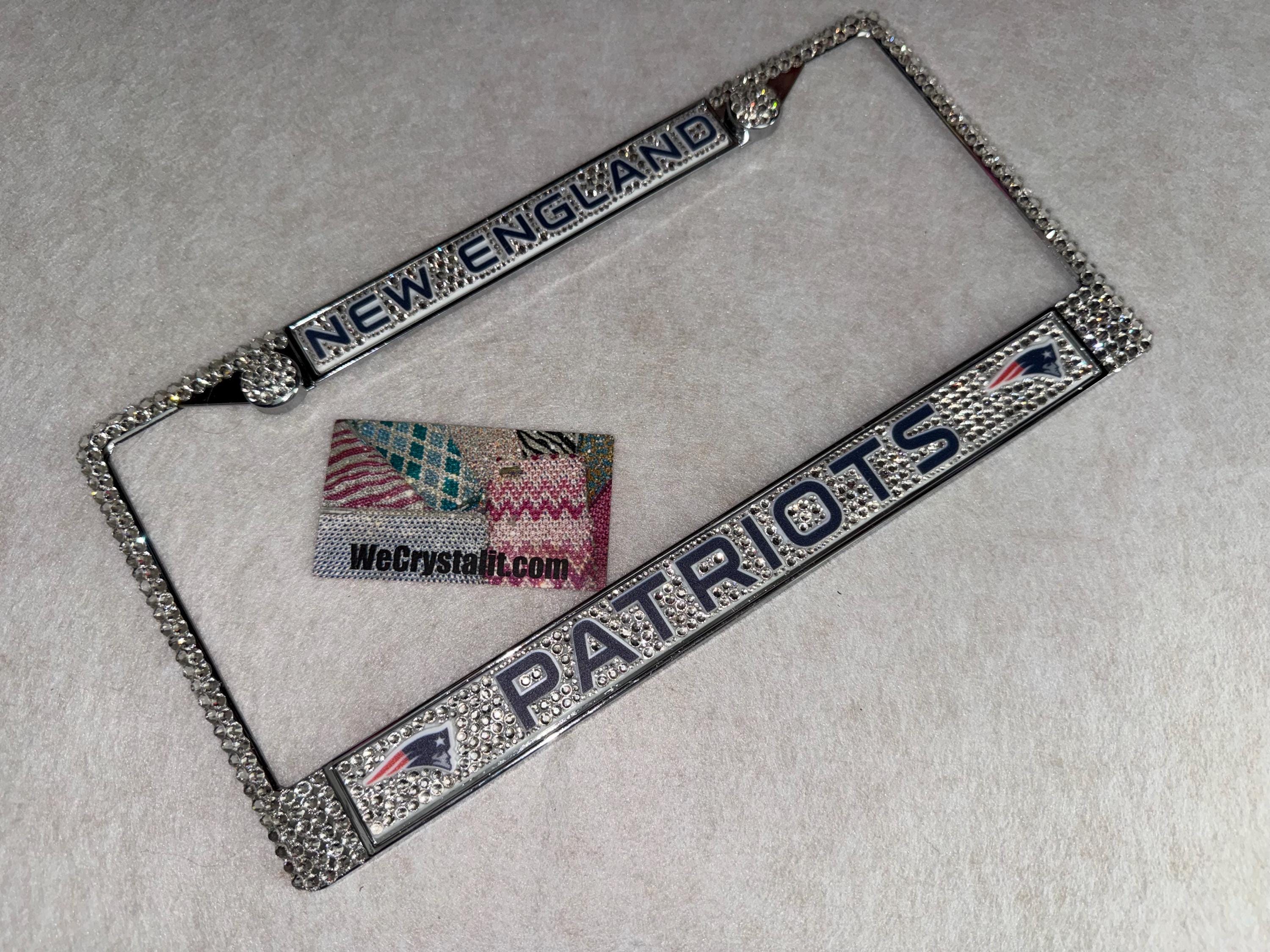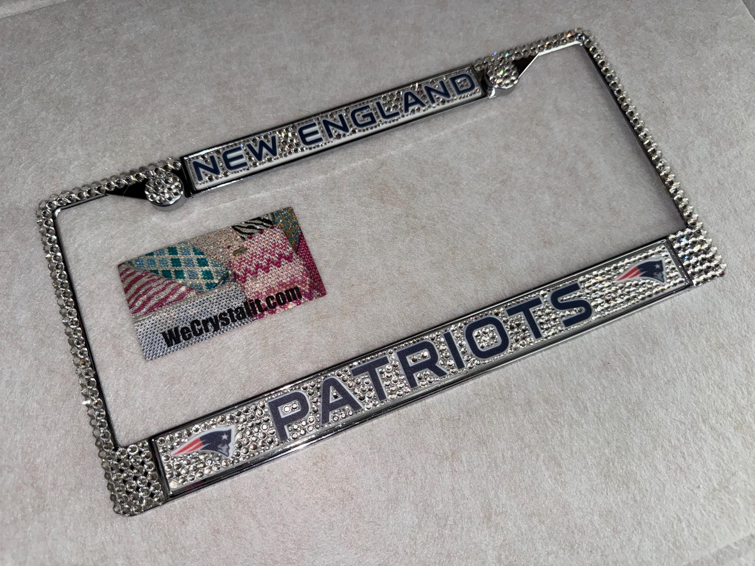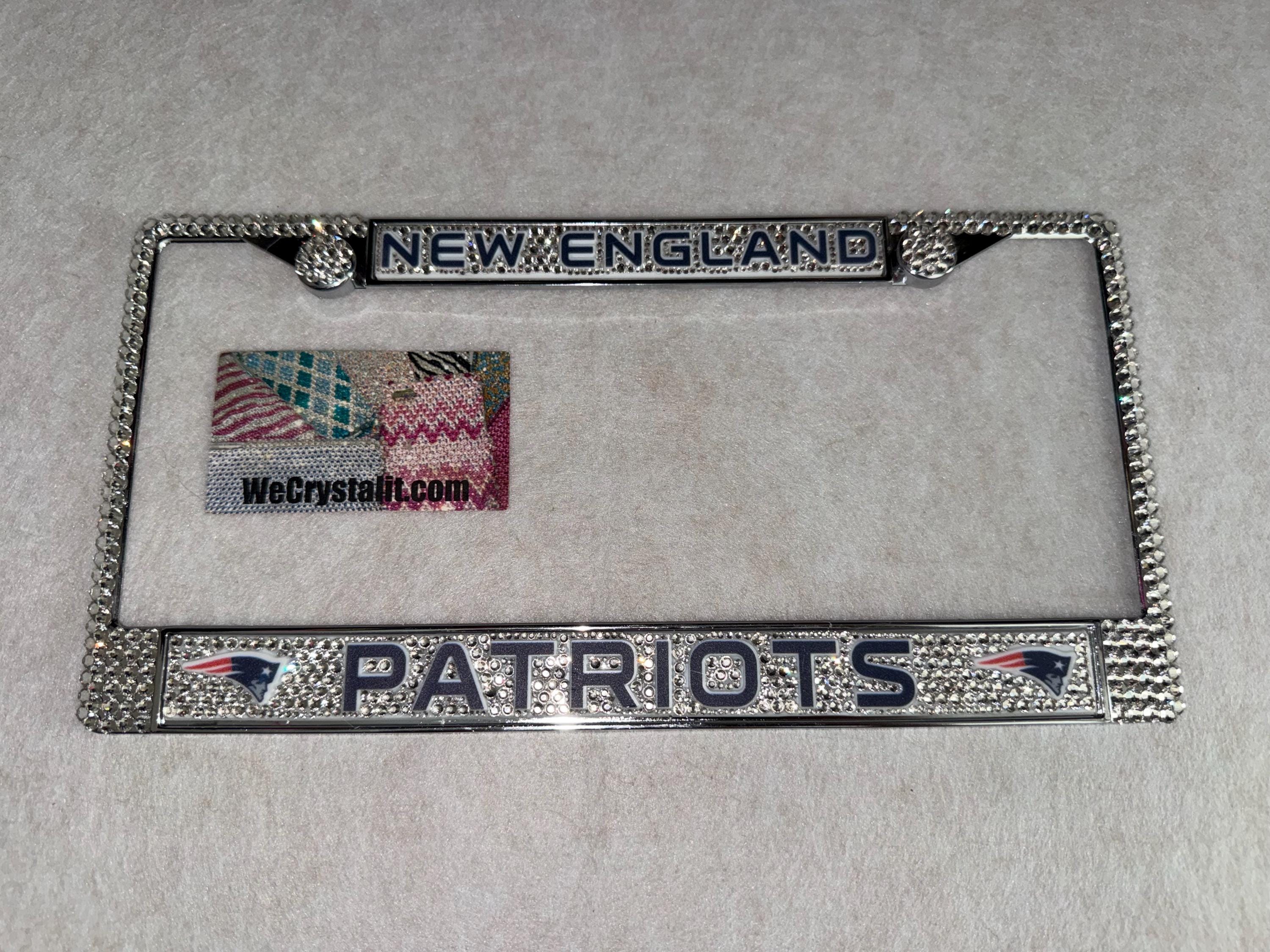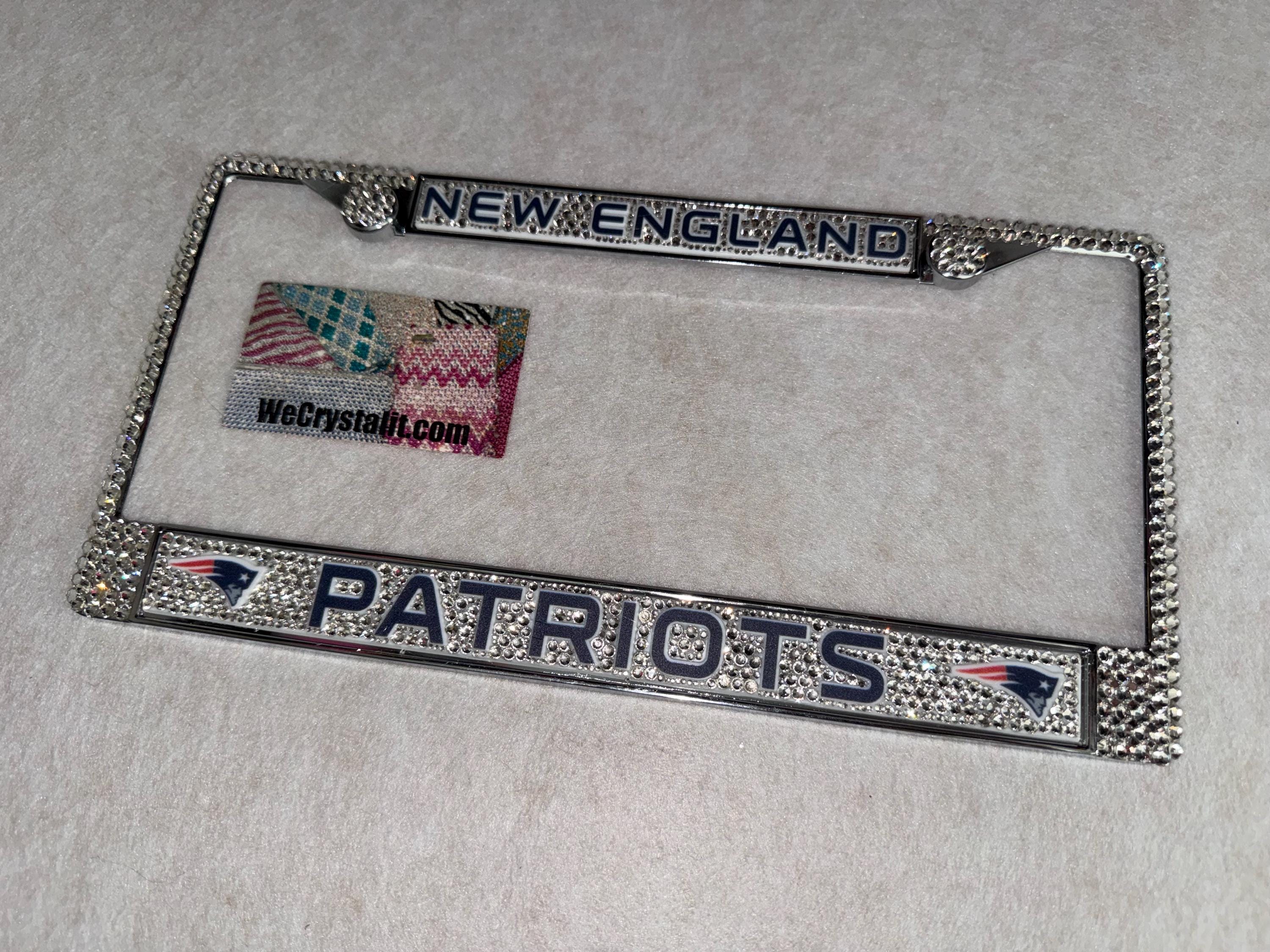 New England Patriots Sports Bling License Plate Thicker on bottom so you only need two Holes to hold the plate on.