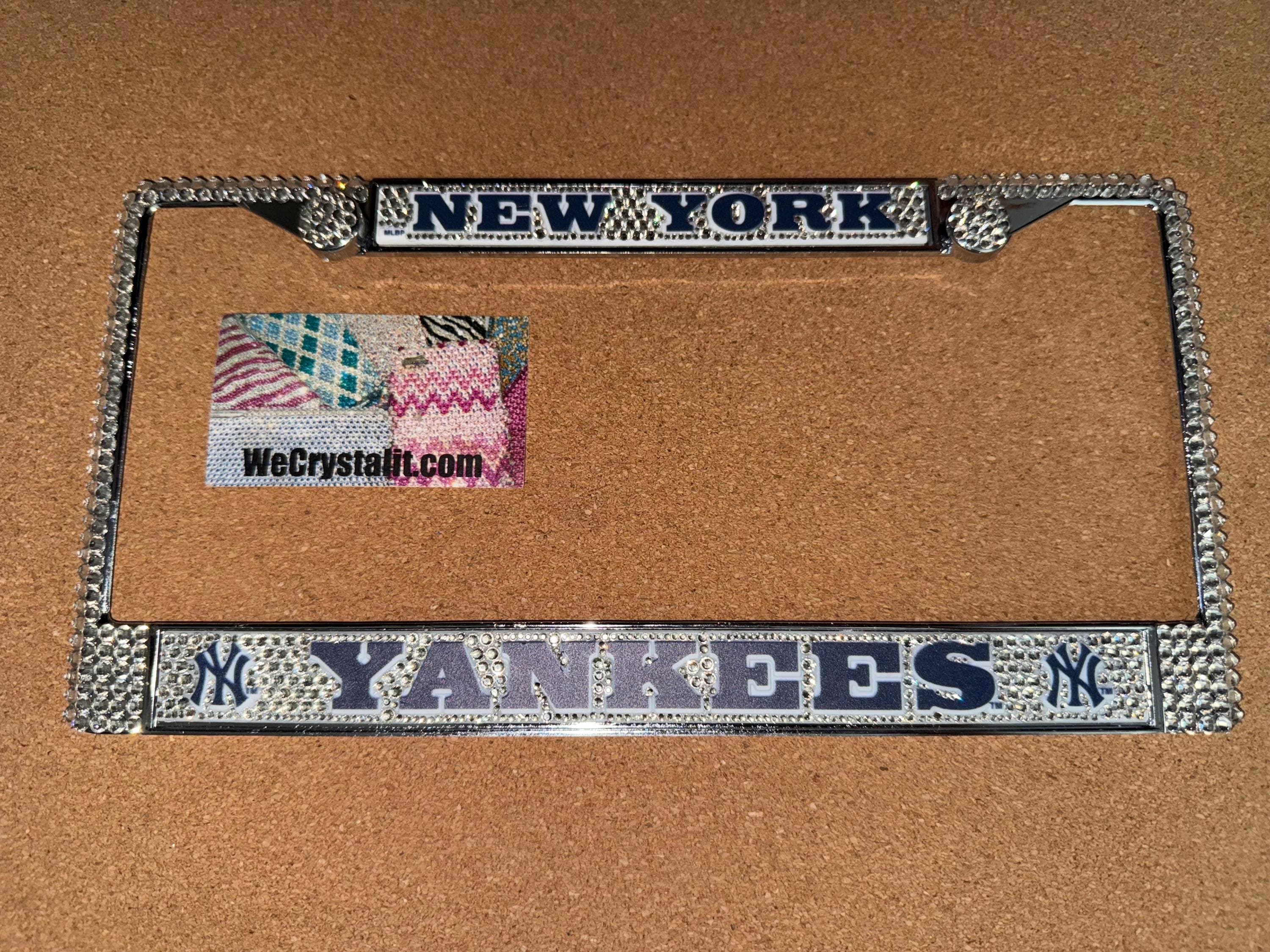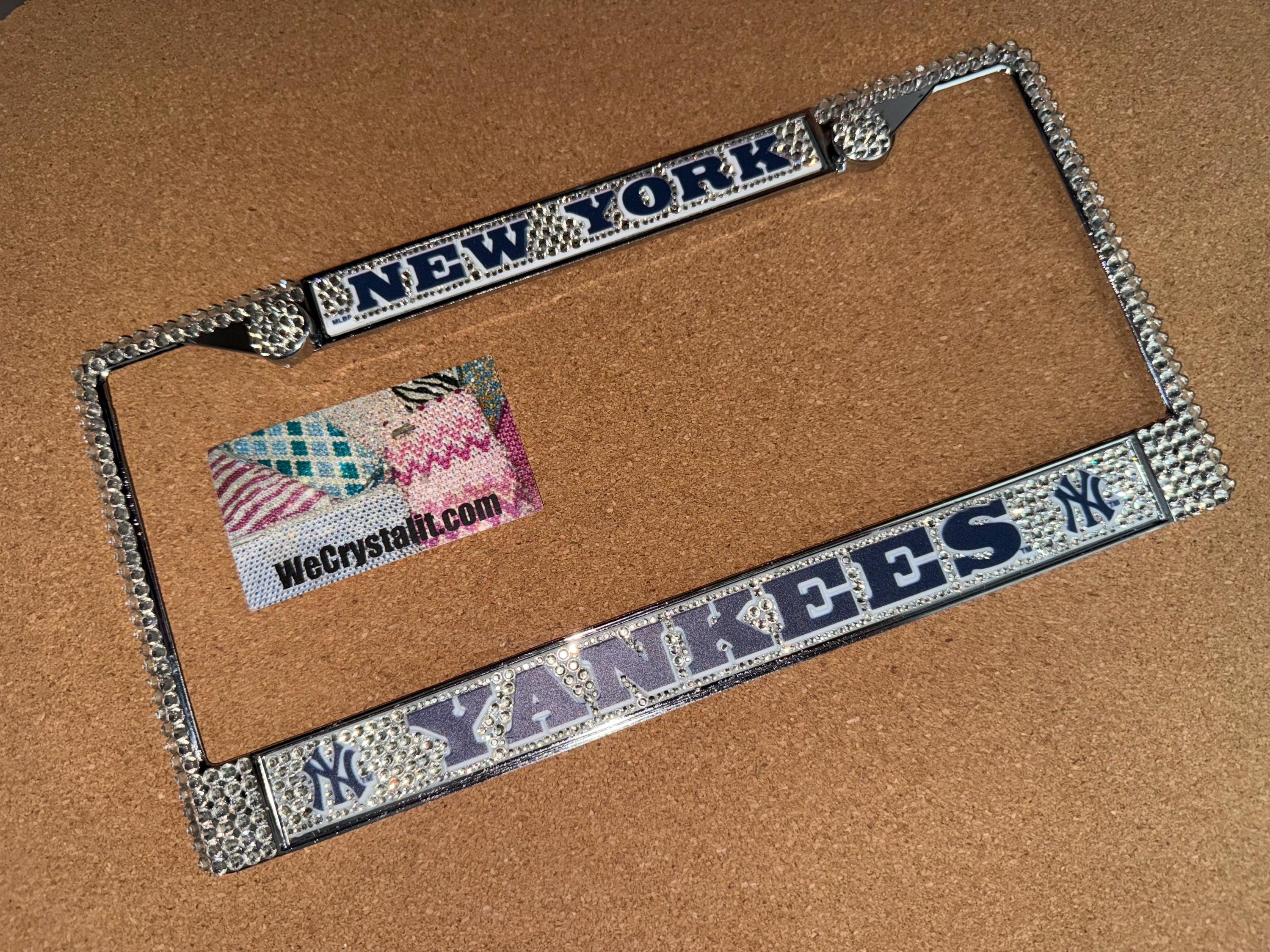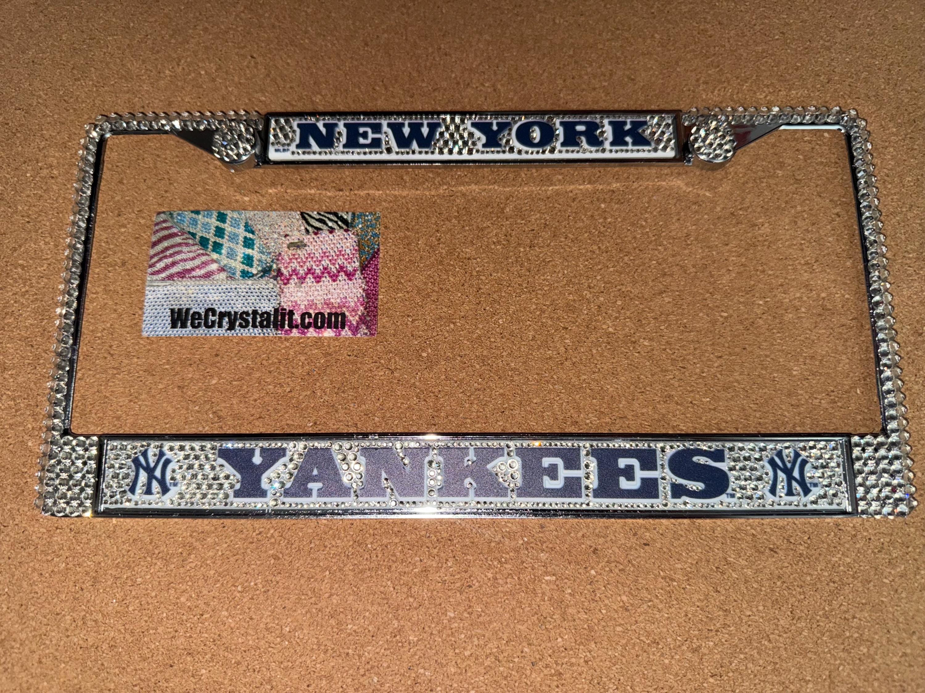 Yankees baseball Sports Bling License Plate Thicker on bottom so you only need two Holes to hold the plate on.