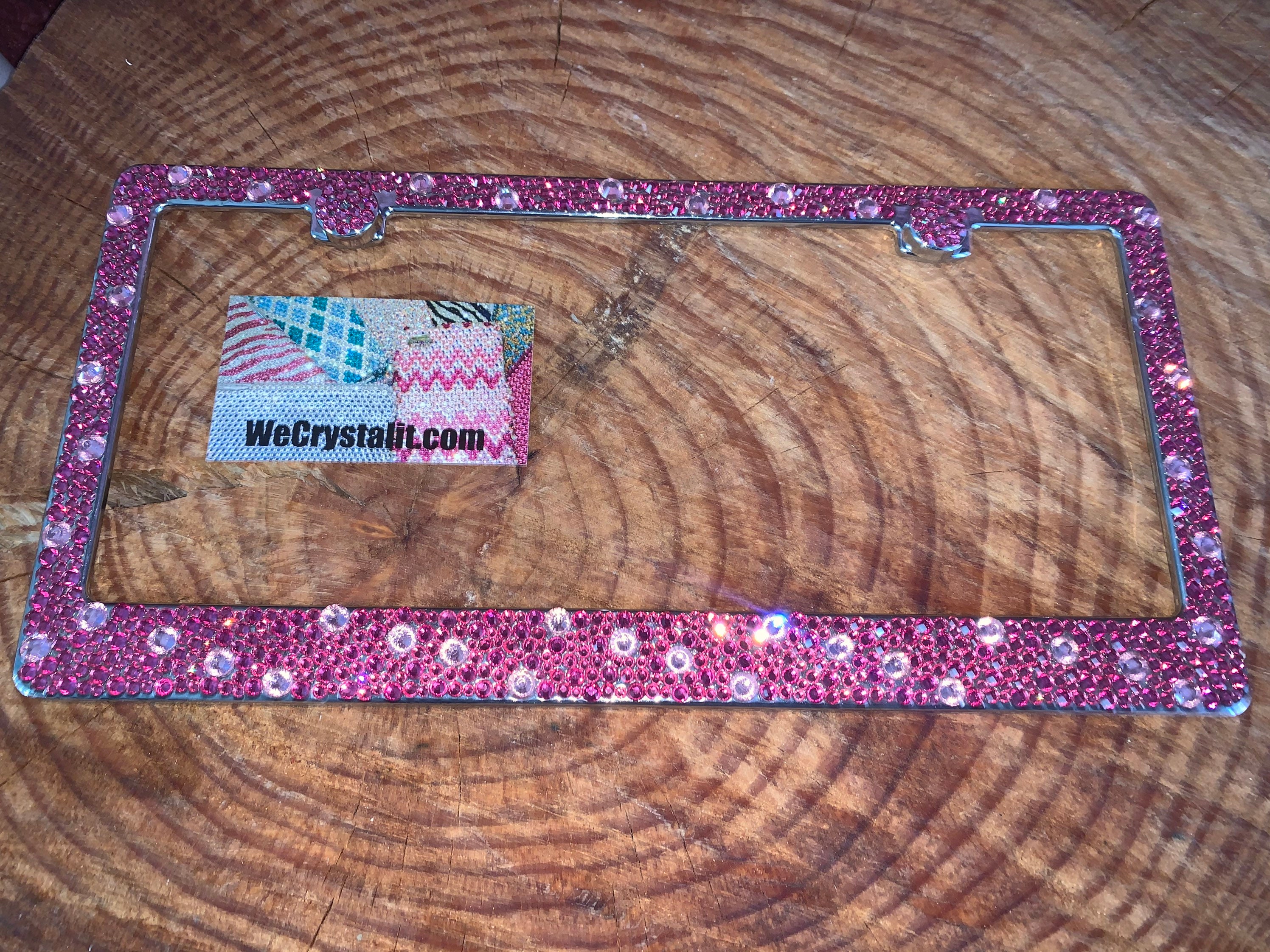 Pink Crystal bumpie Bling License Plate Thicker on bottom so you only need two Holes to hold the plate on.